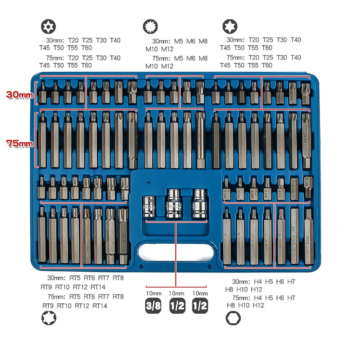 75-Piece 3/8" & 1/2" Drive Bit Set