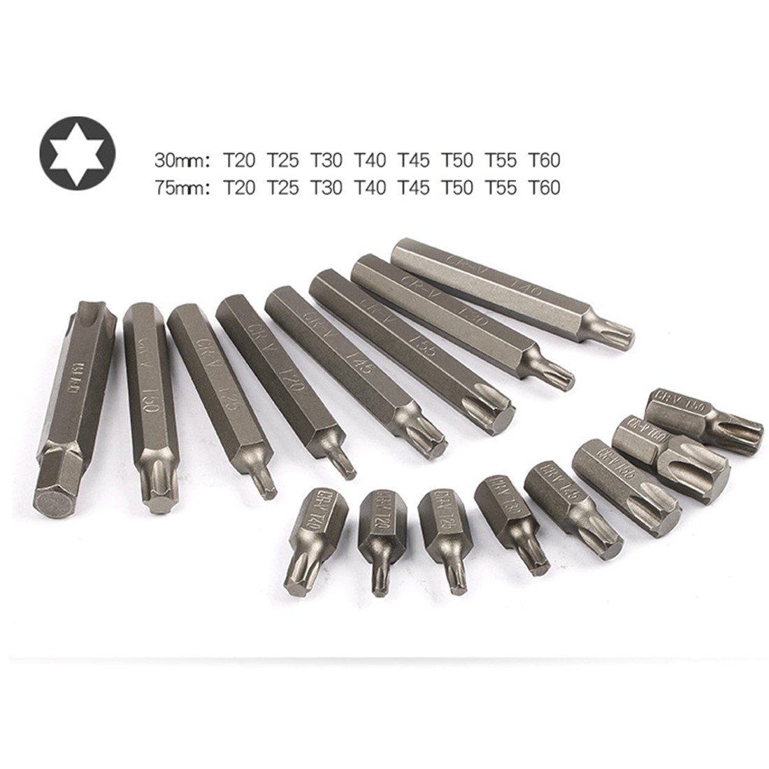 75MM TORX BIT: T20 - T25 - T30 - T40 - T45 - T50 - T55 - T60
