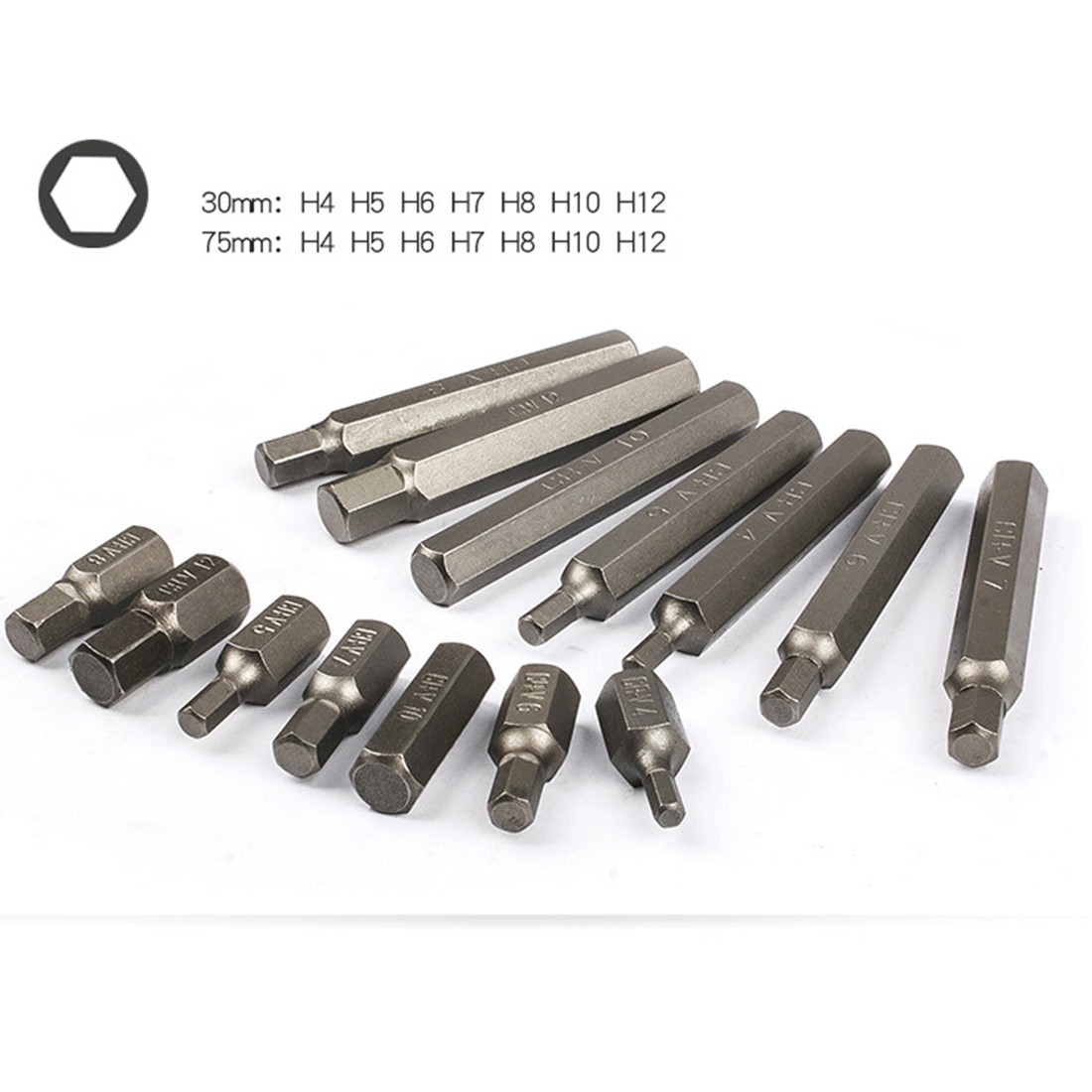 75mm Hex Bit: H4 - H5 - H6 - H7 - H8 - H10 - H12