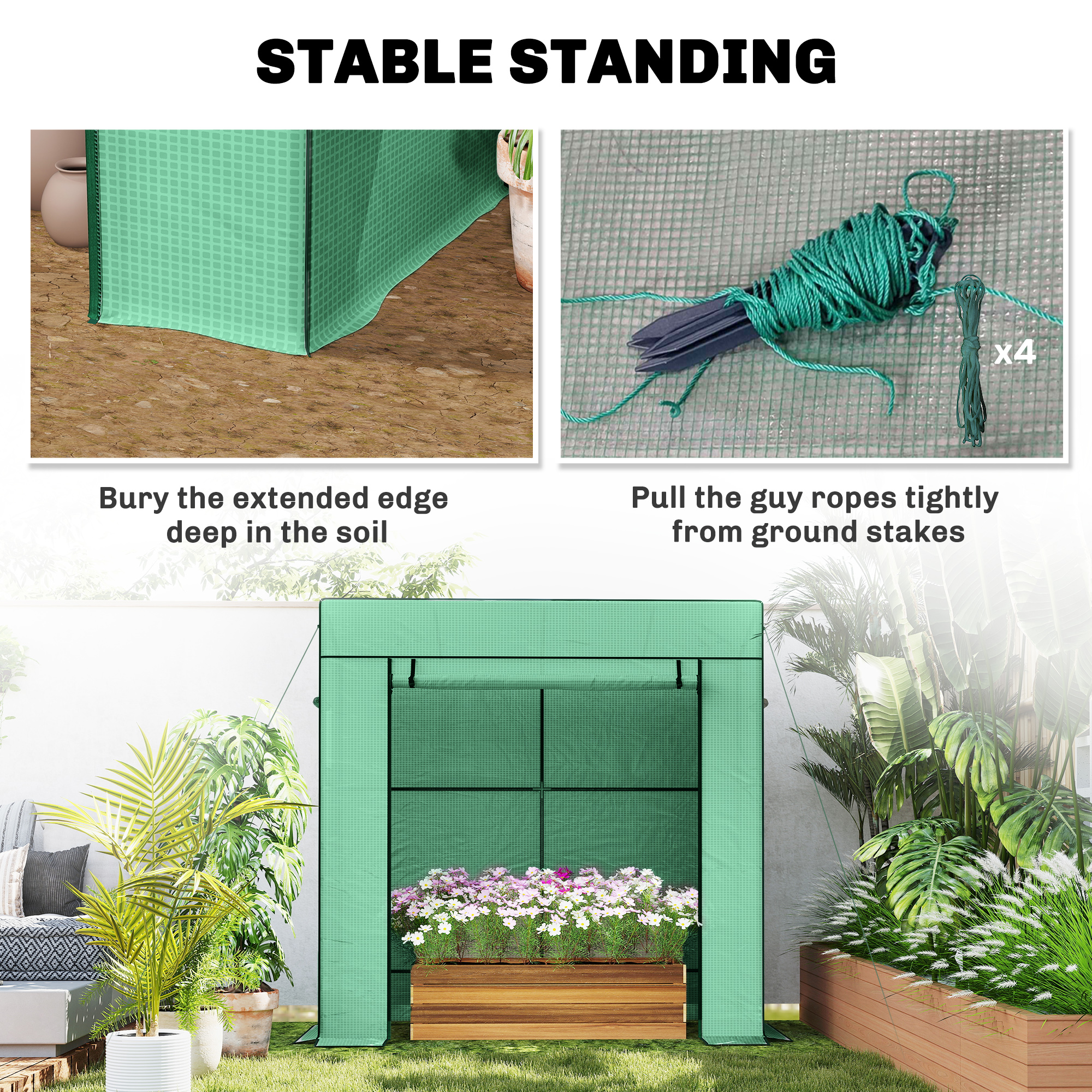Grow a moderate variety of plants and vegetables with this 77 x 196cm greenhouse. The plastic cover creates safe shelter inside, complete with a zipped door to access. Two windows bring in fresh air, when needed.