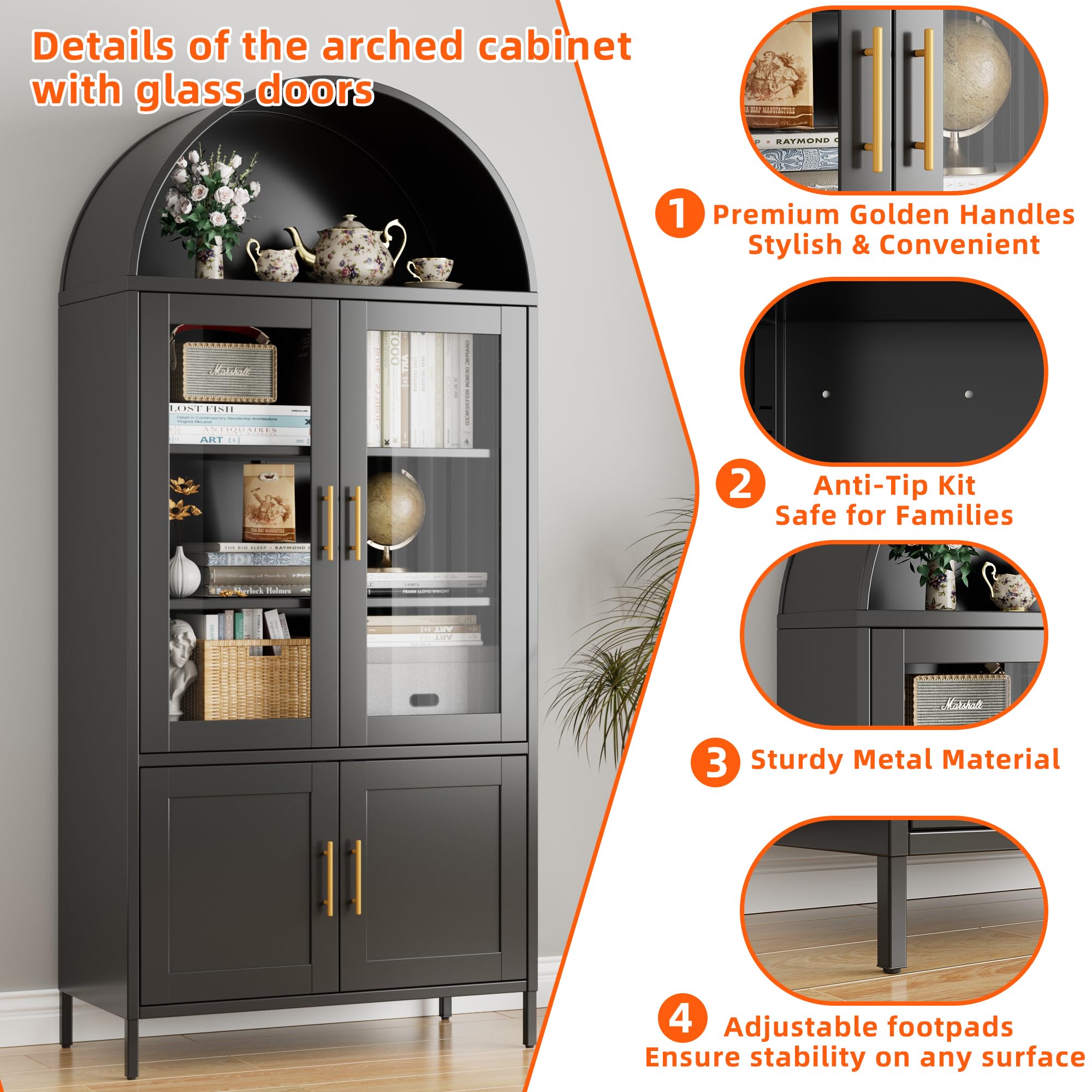 • 【Large Size&4 Doors】The black arched cabinet is78.7"H×35.4"W×17.7"D,which has 2 glass doors and 2 metal doors, can store different items. The design of the glass door not only makes it convenient for us not to open the door to confirm the items stored inside but also to isolate the dust in the air.