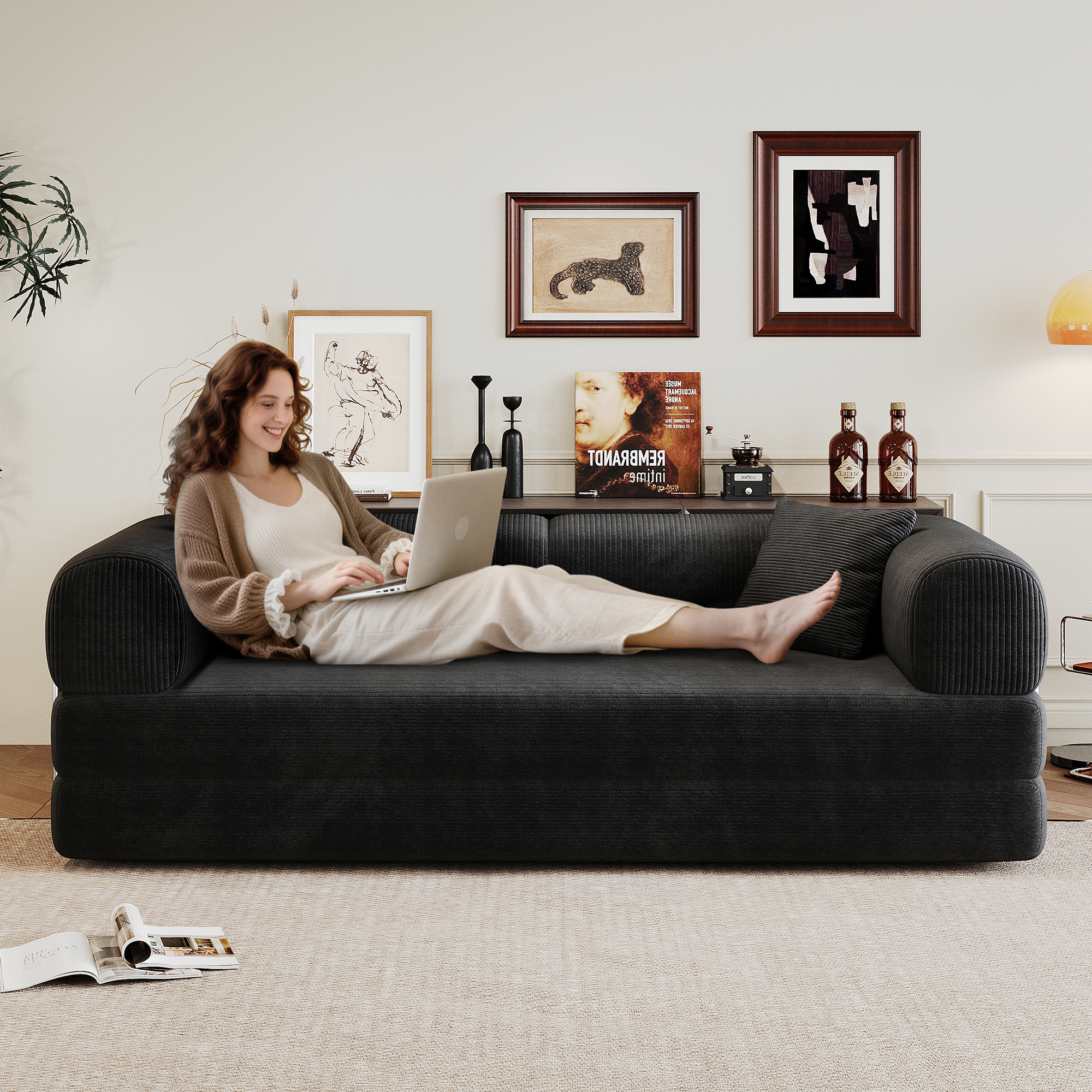Product Name:78.8" Compression Sofa,Convertible Floor Sofa Bed-with Pillow Back Support Armrest,Comfy Futon Couch Sleeper Bed,Loveseats Boneless Modular Sectional Sofa,Corduroy fabric,for Living Room,Bedroom,Black