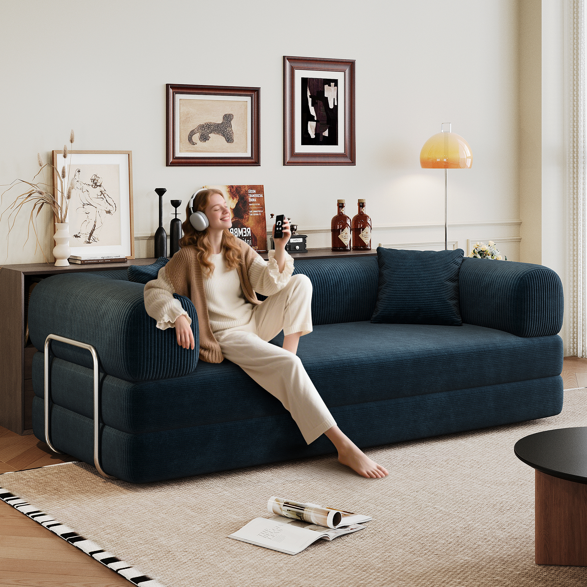 Product Name:78.8" Compression Sofa,Convertible Floor Sofa Bed-with Pillow Back Support Armrest,Comfy Futon Couch Sleeper Bed,Loveseats Boneless Modular Sectional Sofa,Corduroy fabric,for Living Room ,Bedroom,Blue