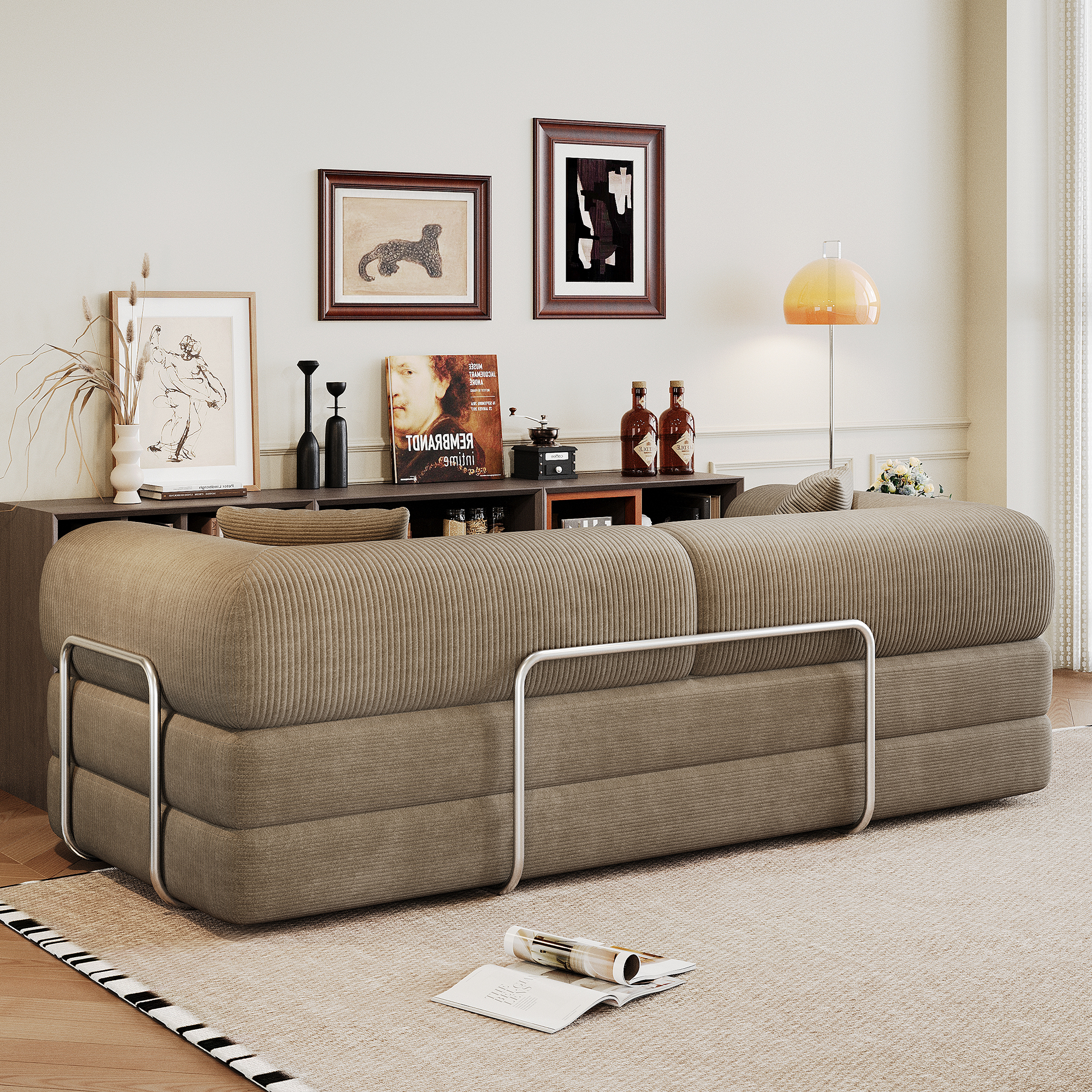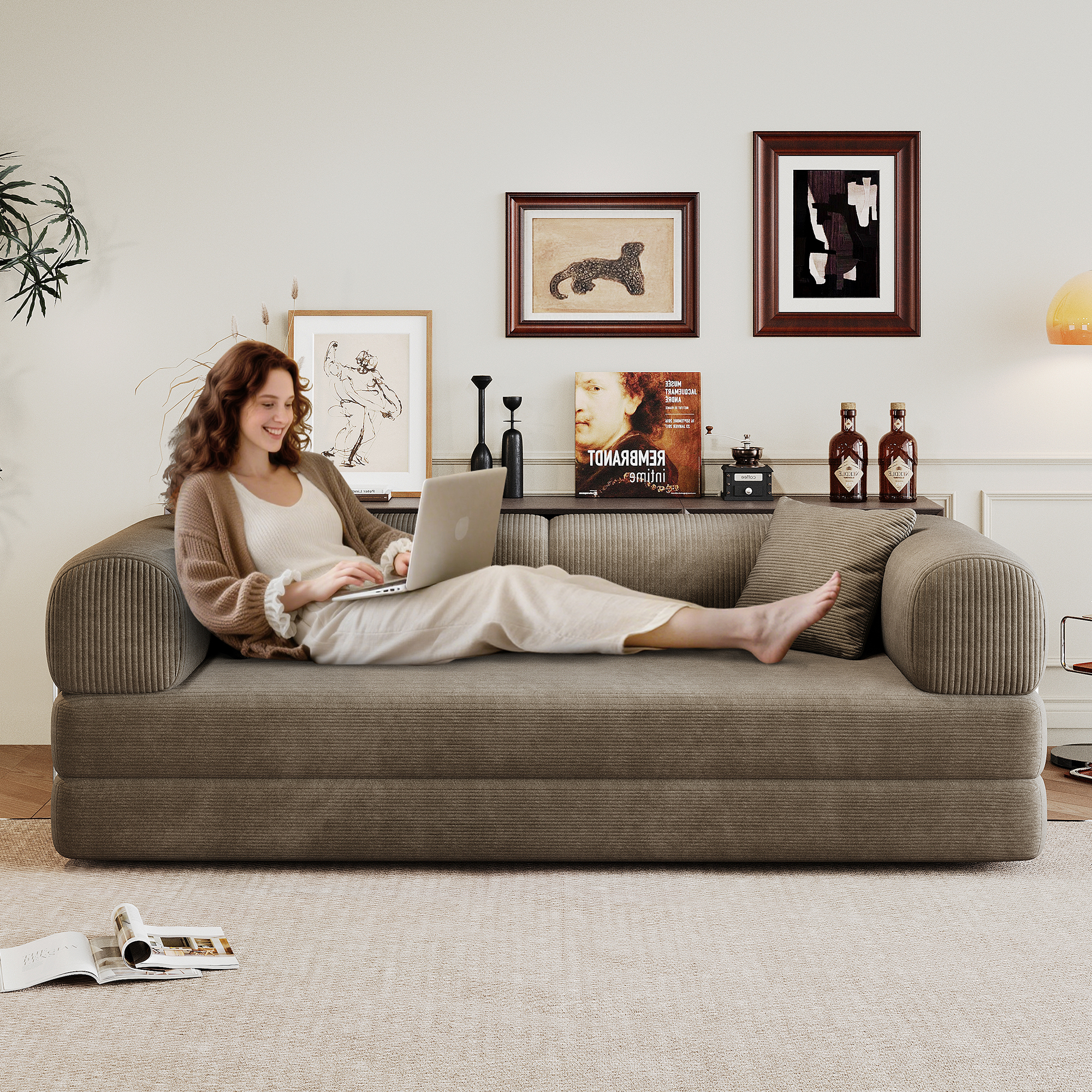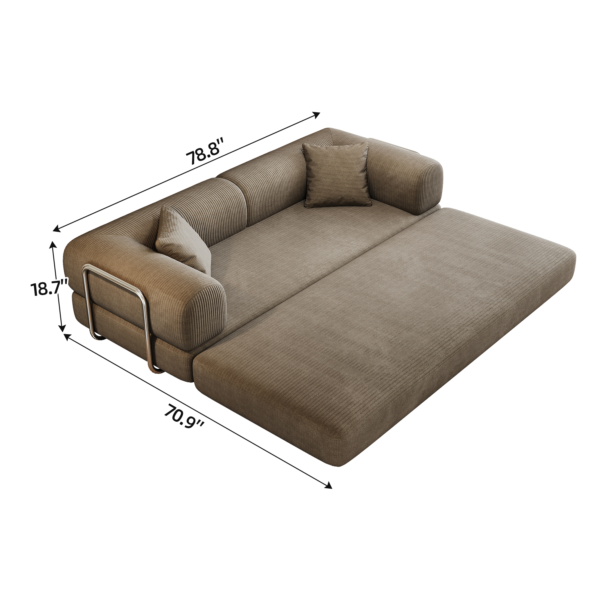 Product Name:78.8" Compression Sofa,Convertible Floor Sofa Bed-with Pillow Back Support Armrest,Comfy Futon Couch Sleeper Bed,Loveseats Boneless Modular Sectional Sofa,Corduroy fabric,for Living Room ,Bedroom,Camel