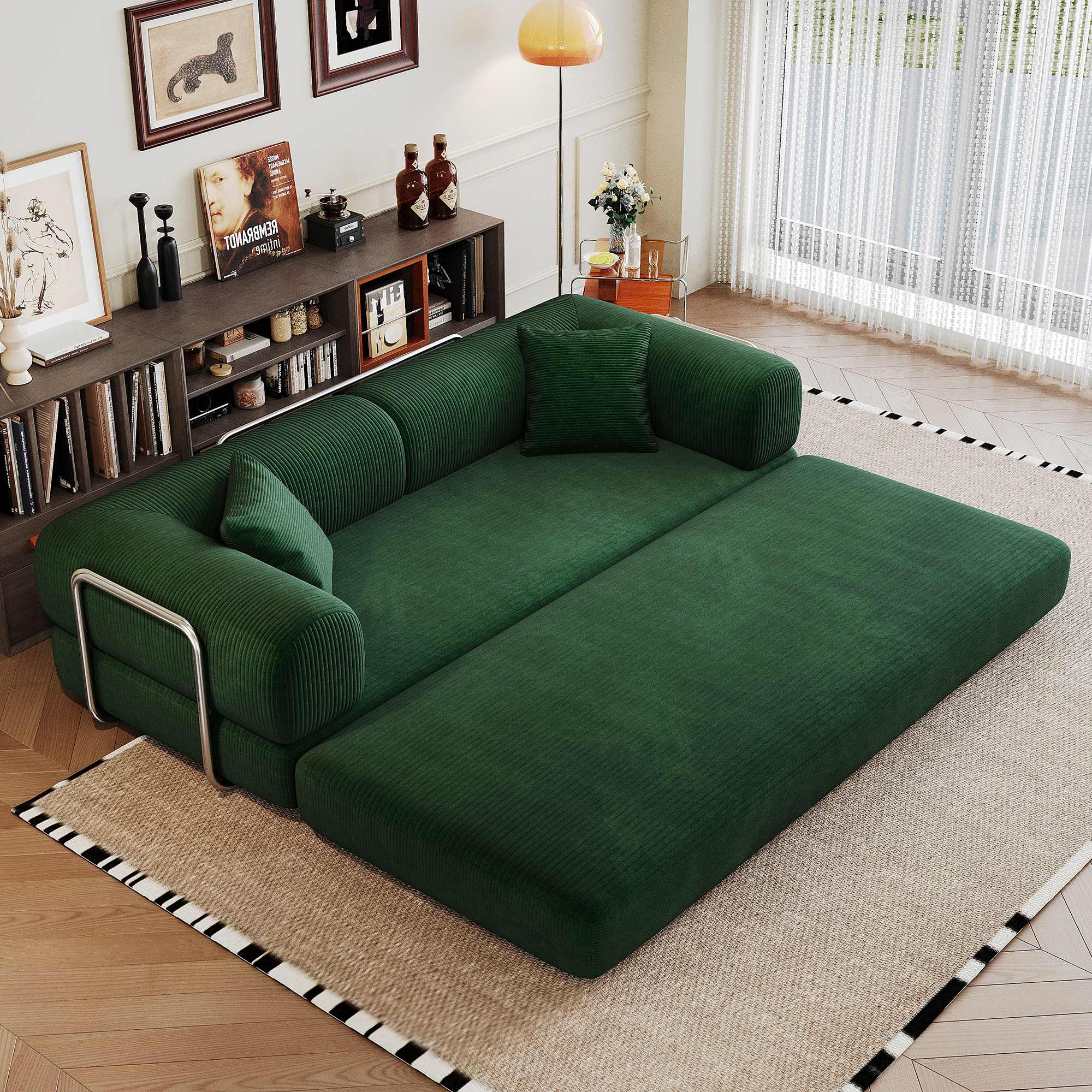 Product Name:78.8" Compression Sofa,Convertible Floor Sofa Bed-with Pillow Back Support Armrest,Comfy Futon Couch Sleeper Bed,Loveseats Boneless Modular Sectional Sofa,Corduroy fabric,for Living Room,Bedroom,Green