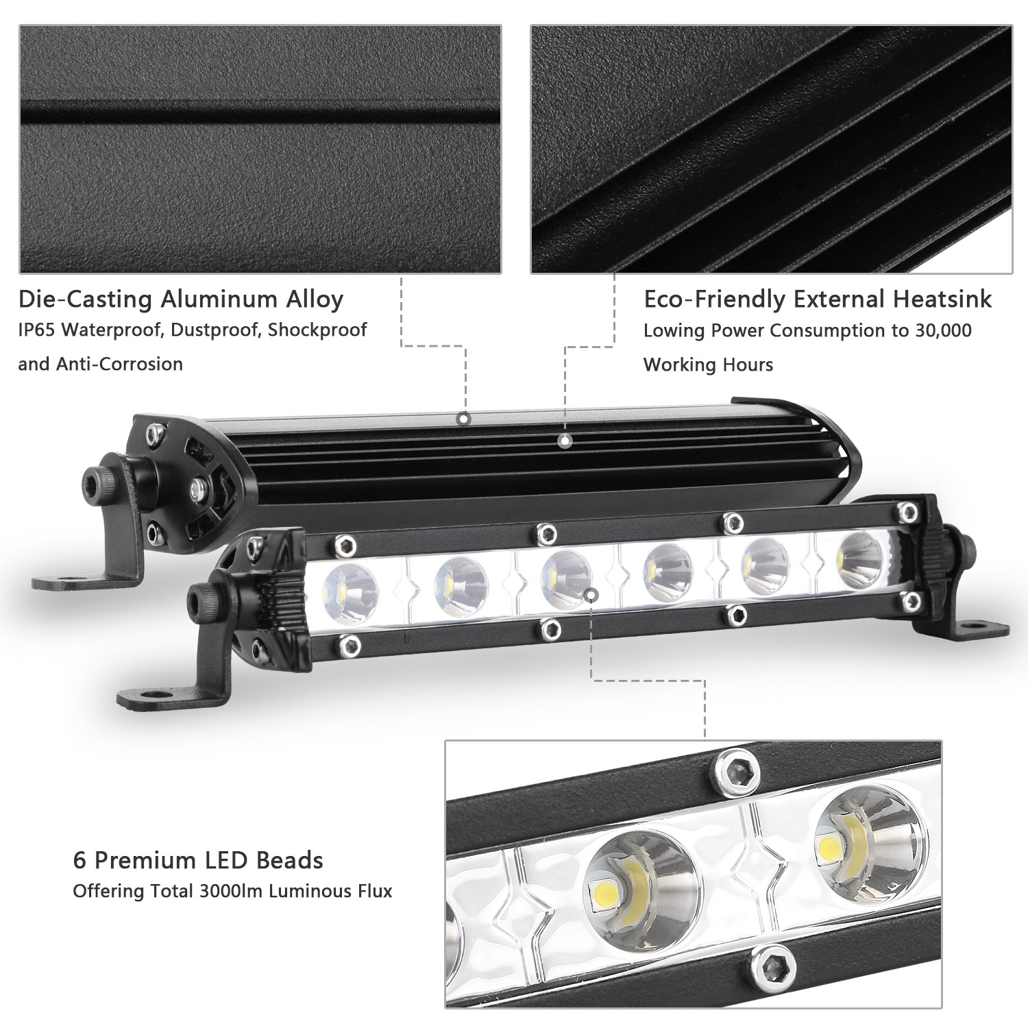 *Long Lifetime*:Coming with an eco-friendly external heat-sink design,our LED light bar has low power consumption,which allows it to work approx. 30,000 hours.