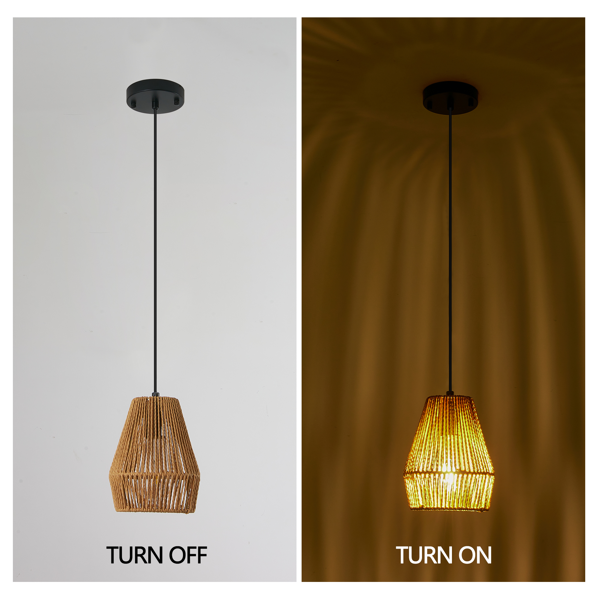 Product Name:7" Set of 3 Rustic Hemp Rope Pendant Light, Handcrafted Farmhouse Hanging Light Fixture, Adjustable Height Ceiling Lamp for Kitchen Island, Dining Room, or Living Room, Natural Woven Design (No Bulbs)