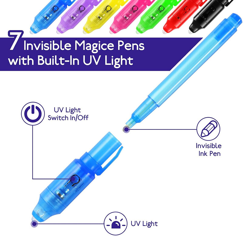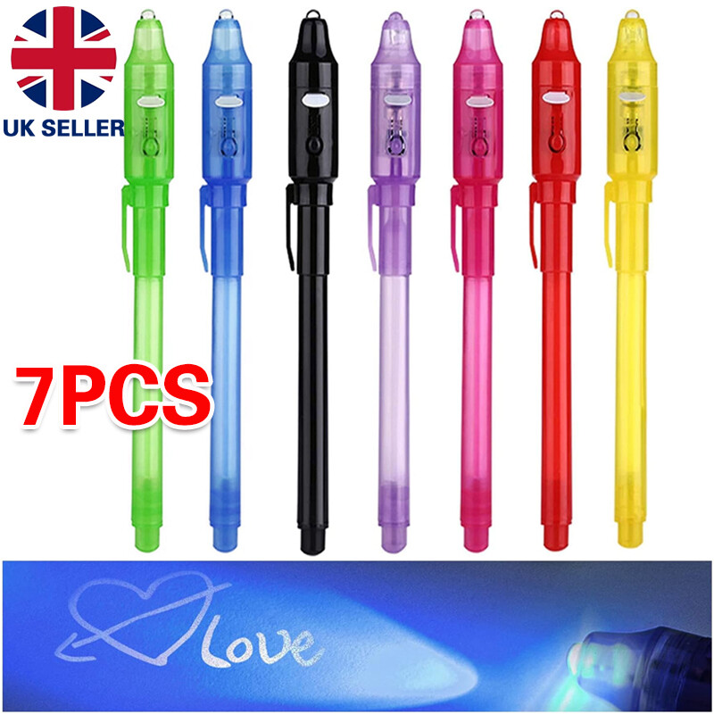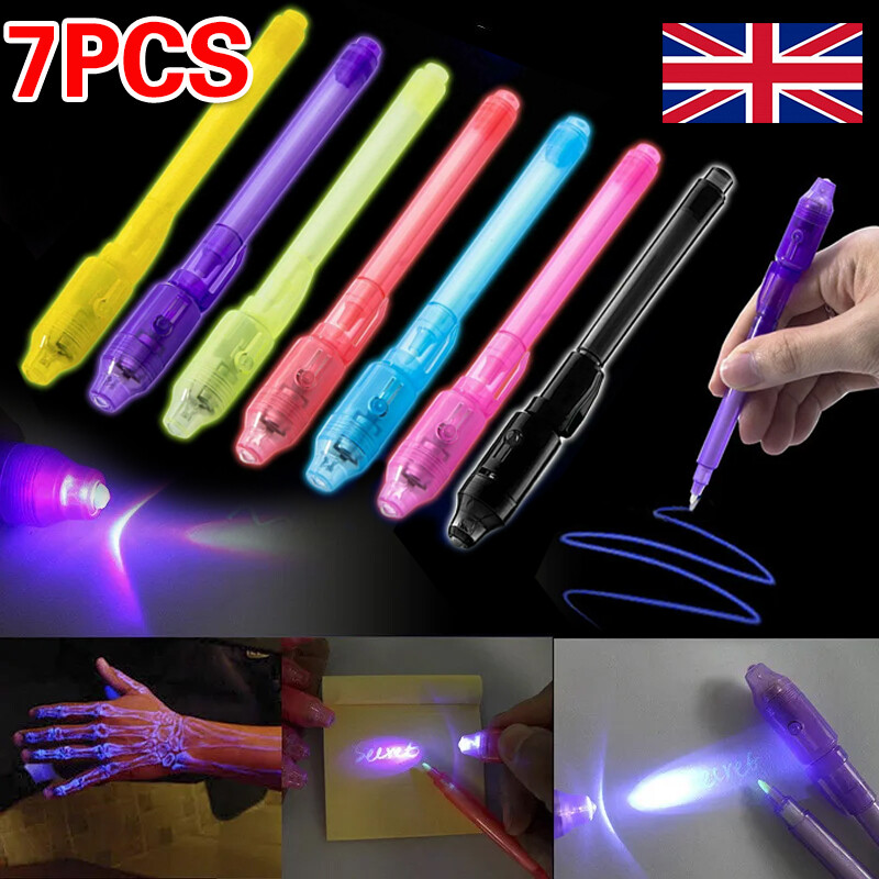 7pcs UV Spy Pens Invisible Ink UV Light Magic Secret Messages Party Kids Gift