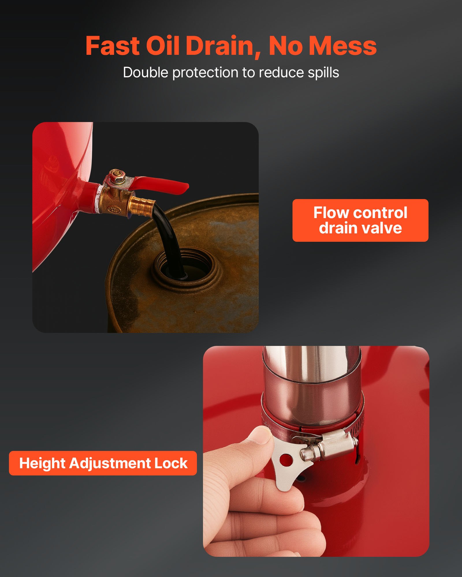 Leak-proof Design: Our oil drain container includes a 15.2-inch wide spill-proof funnel, improving oil recovery. Comes with extra sealing tape and clamps for additional leak protection, avoiding overflow and spills