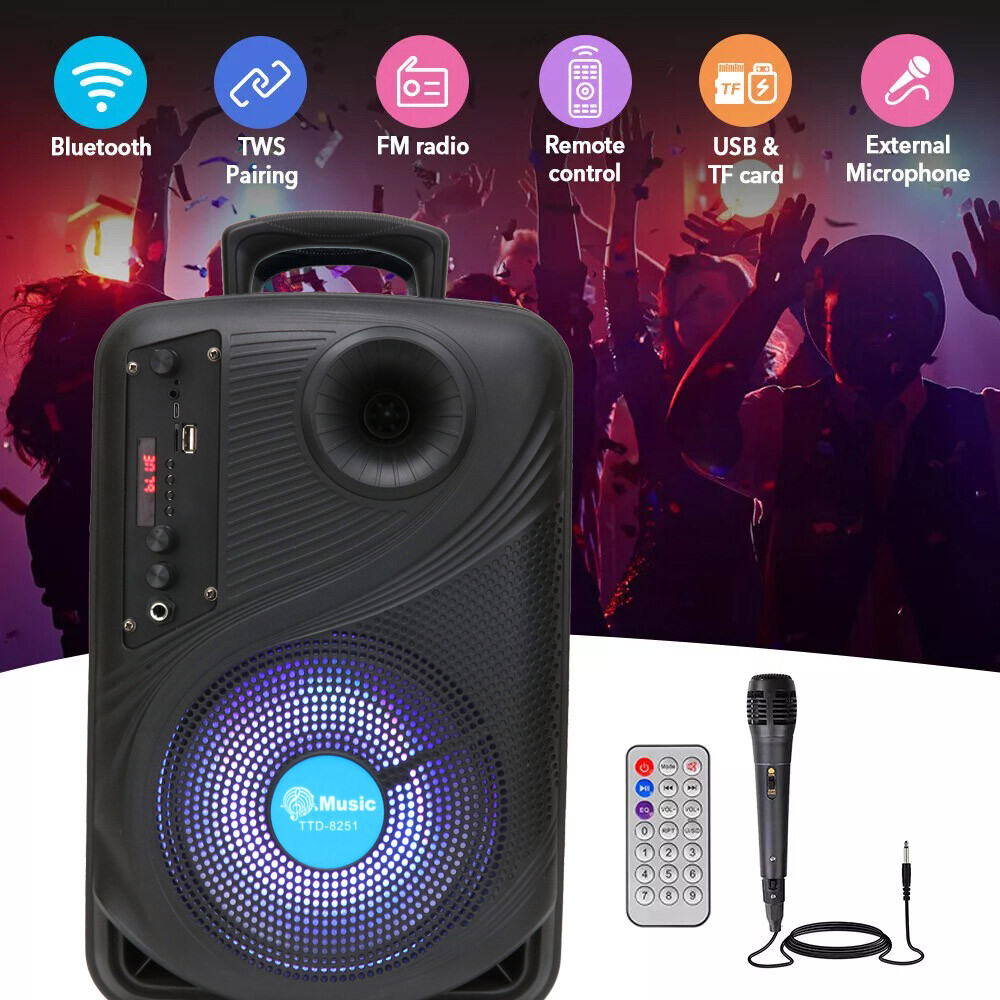 Funtions: Bluetooth/Microphone/USB/TF/AUX/FM/TWS/Remote control