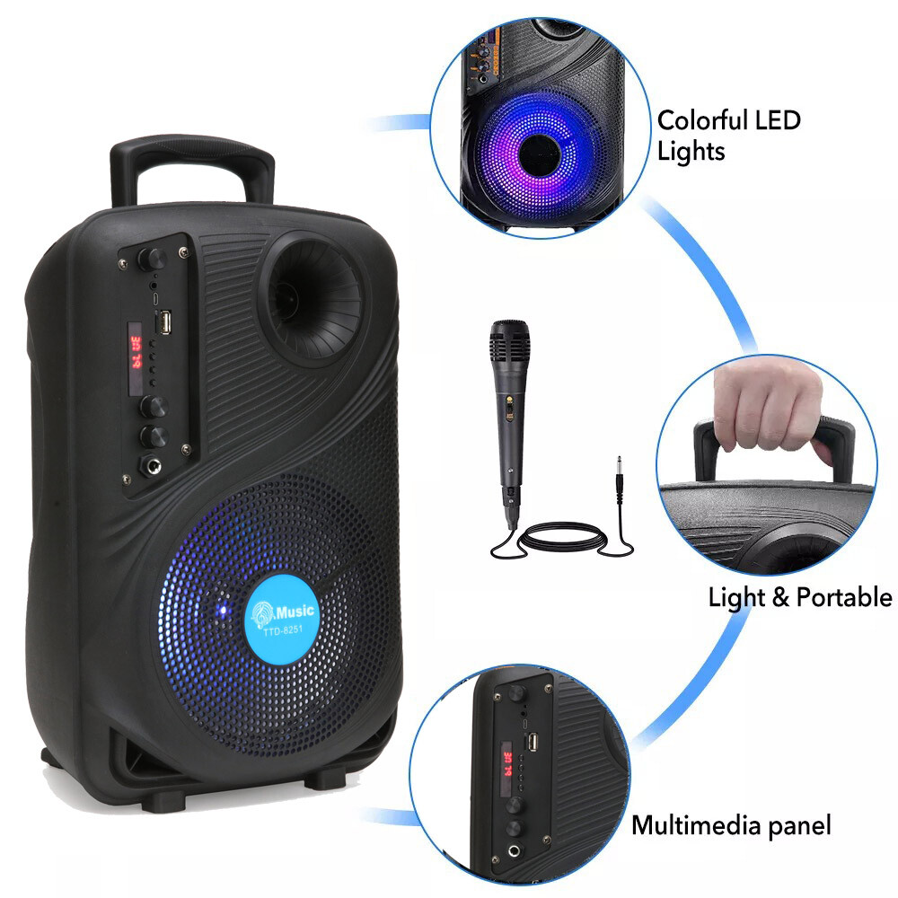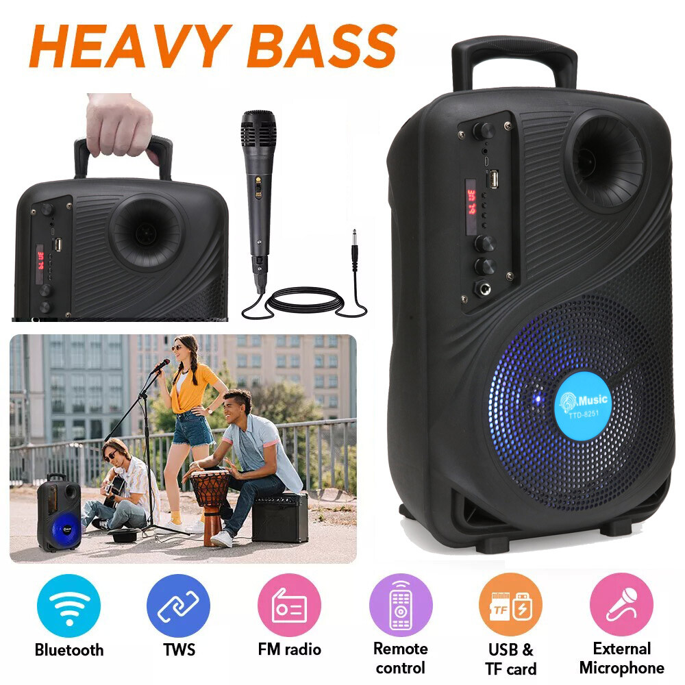 --- Heavy Bass: High-efficient 8" woofer emits deep bass while the mids and highs remain loud and clear even when the volume increases. Crank up the volume, feel deep, natural low vibrations and have a blast at your party.