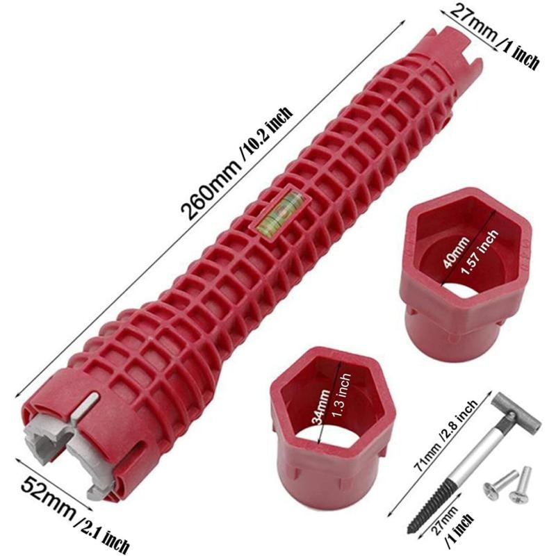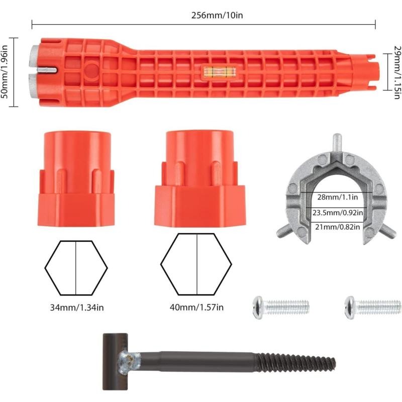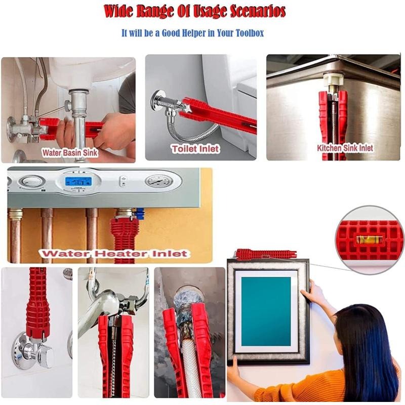 Function:1.A wrench can replace all tools.Various plastic basin nuts and water supply pipe nuts can be fixed and removed, and the notch end can be connected with 2, 3, 4, 6 basin nuts.2.Ideal for hard-to-reach applications.Easy screw-in faucet and sprayer installation won't damage the chrome on the nut.3.Humanized design.Let ladies easily solve the troubles in life.4.Simple operation.Insert the rod into the end of the tool and you can easily turn the nut 360 degrees in any position.save time.