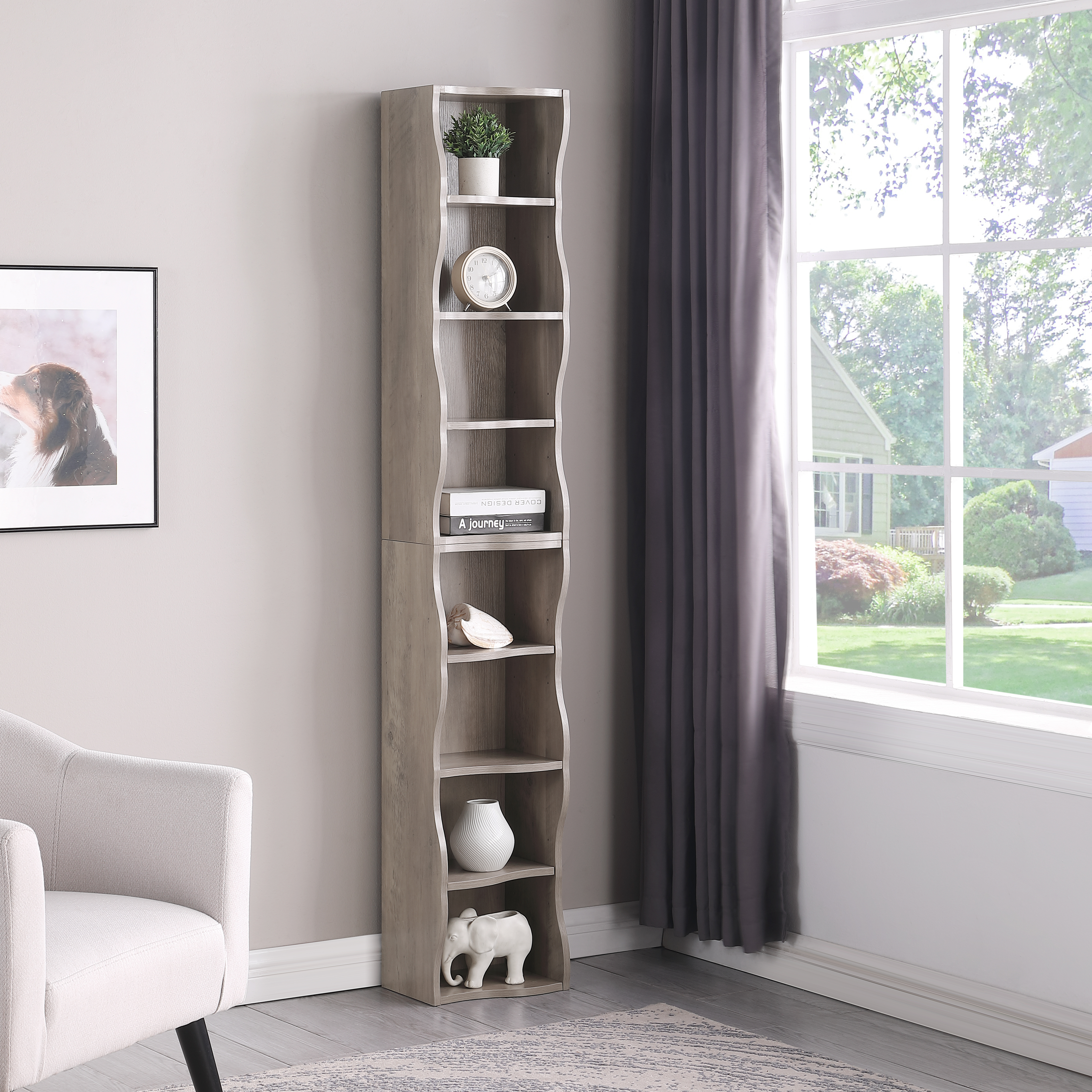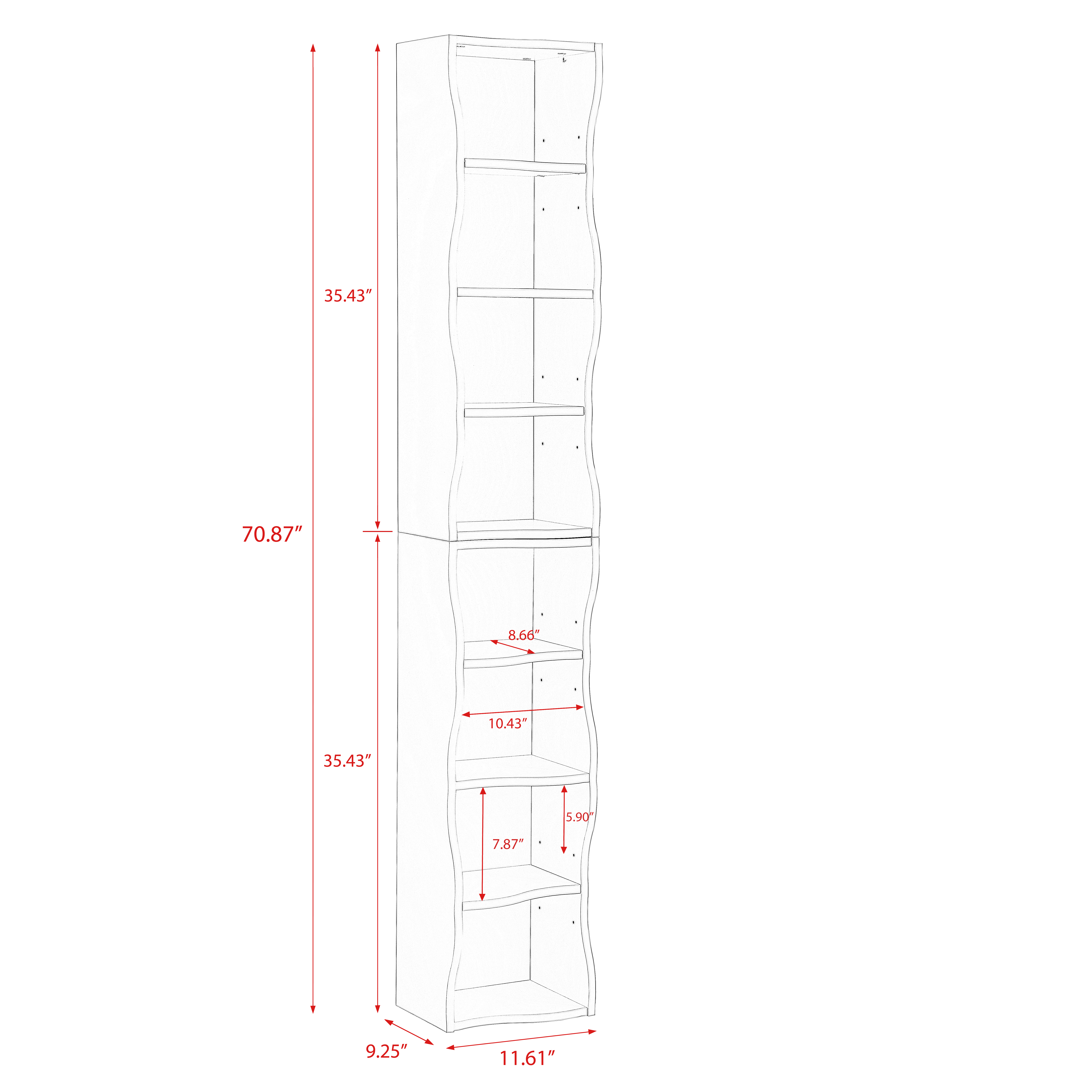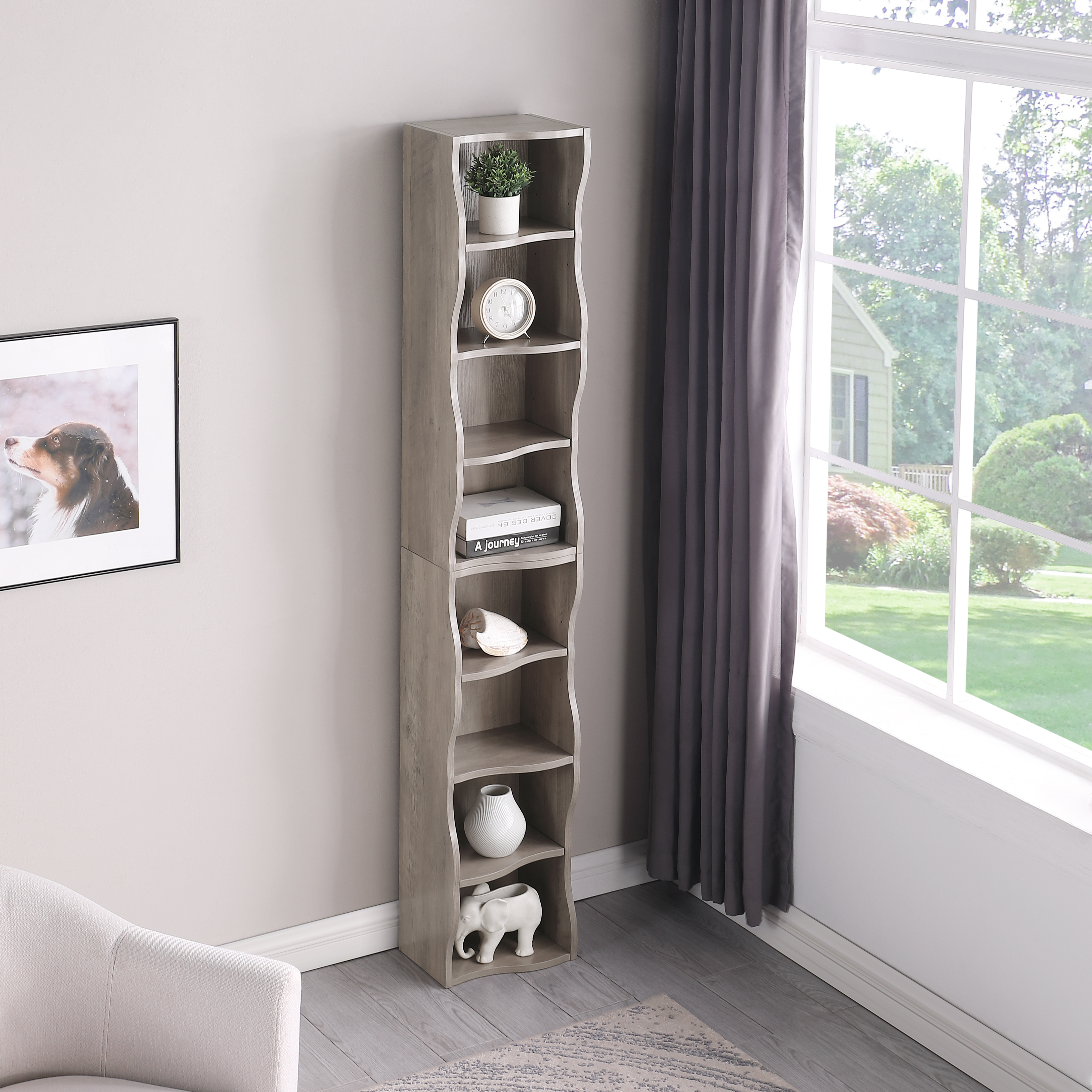 Product Name:8-layer adjustable shelf ultra-thin bookshelf with a wavy border design, which is more aesthetically pleasing, is suitable for high and narrow, display and multi-functional bookshelves in home offices