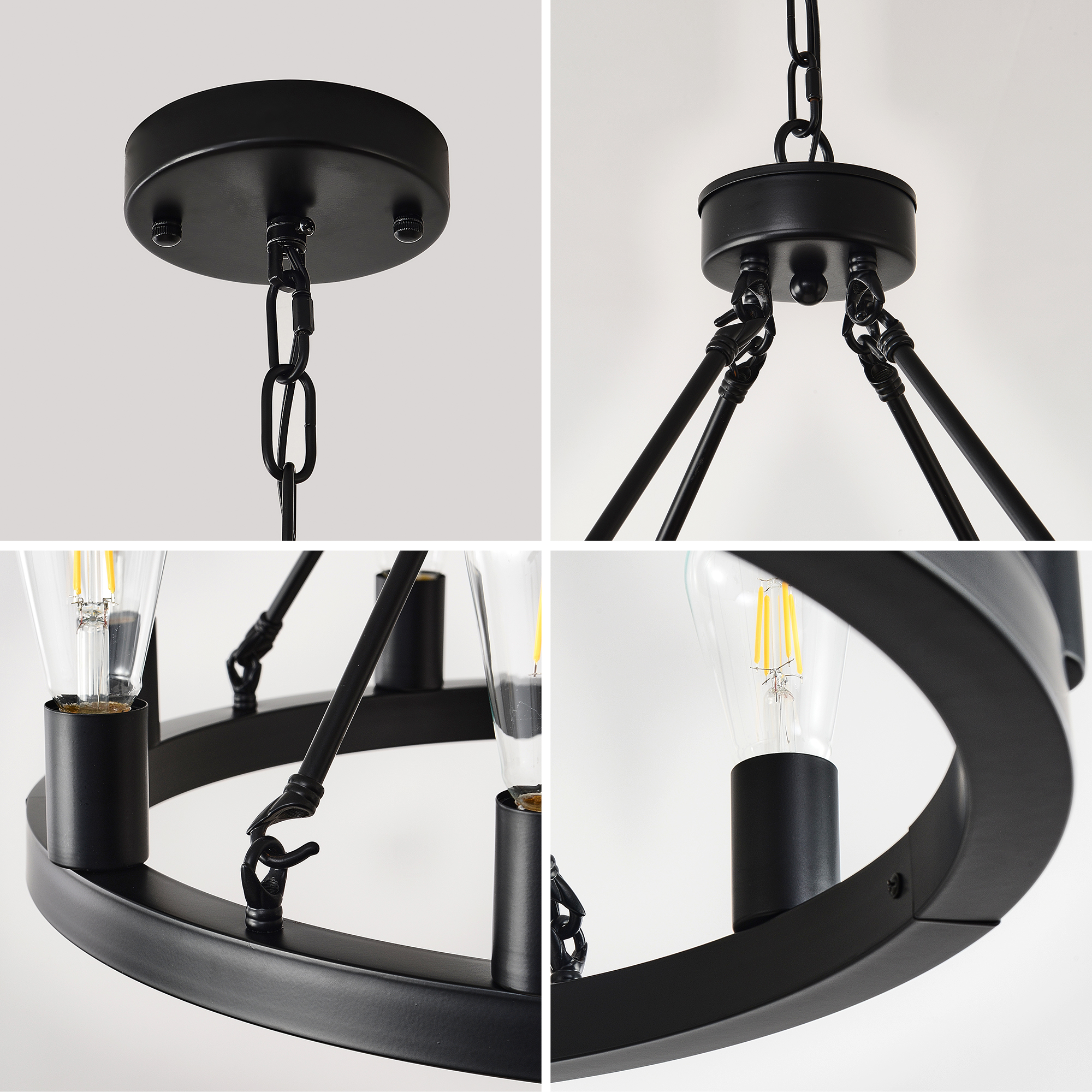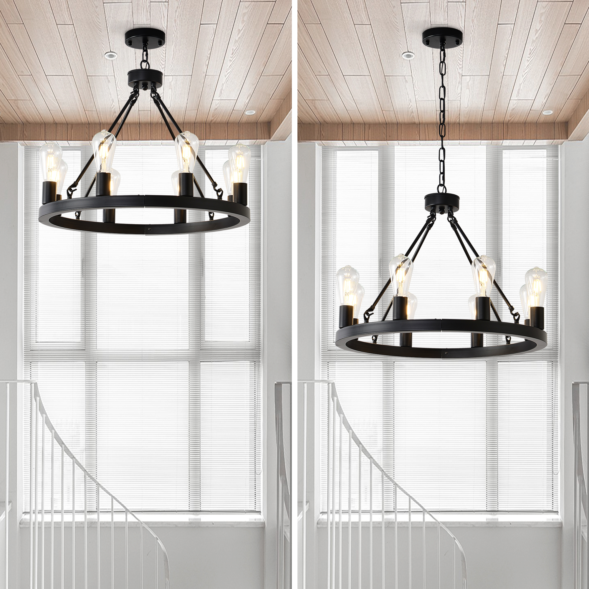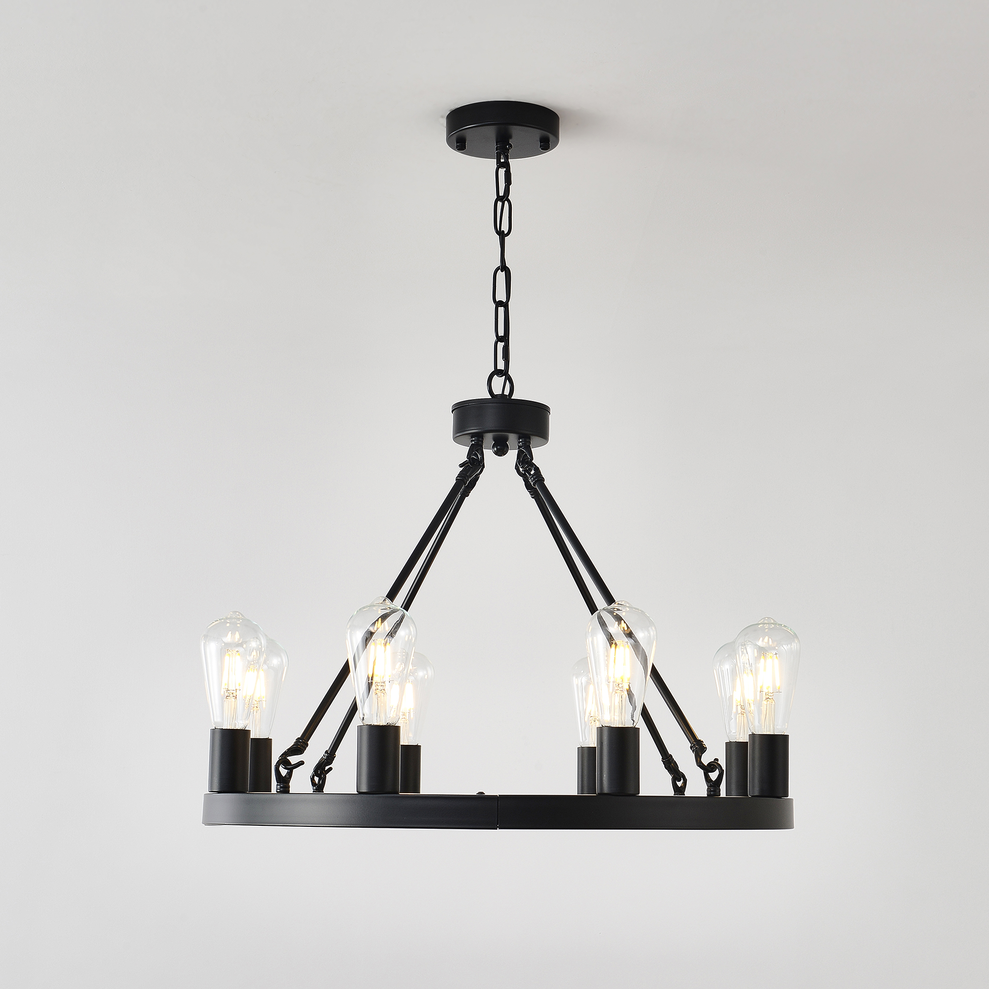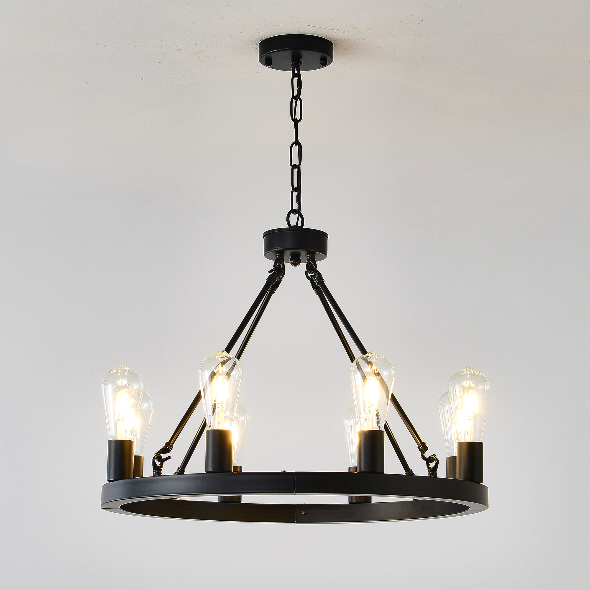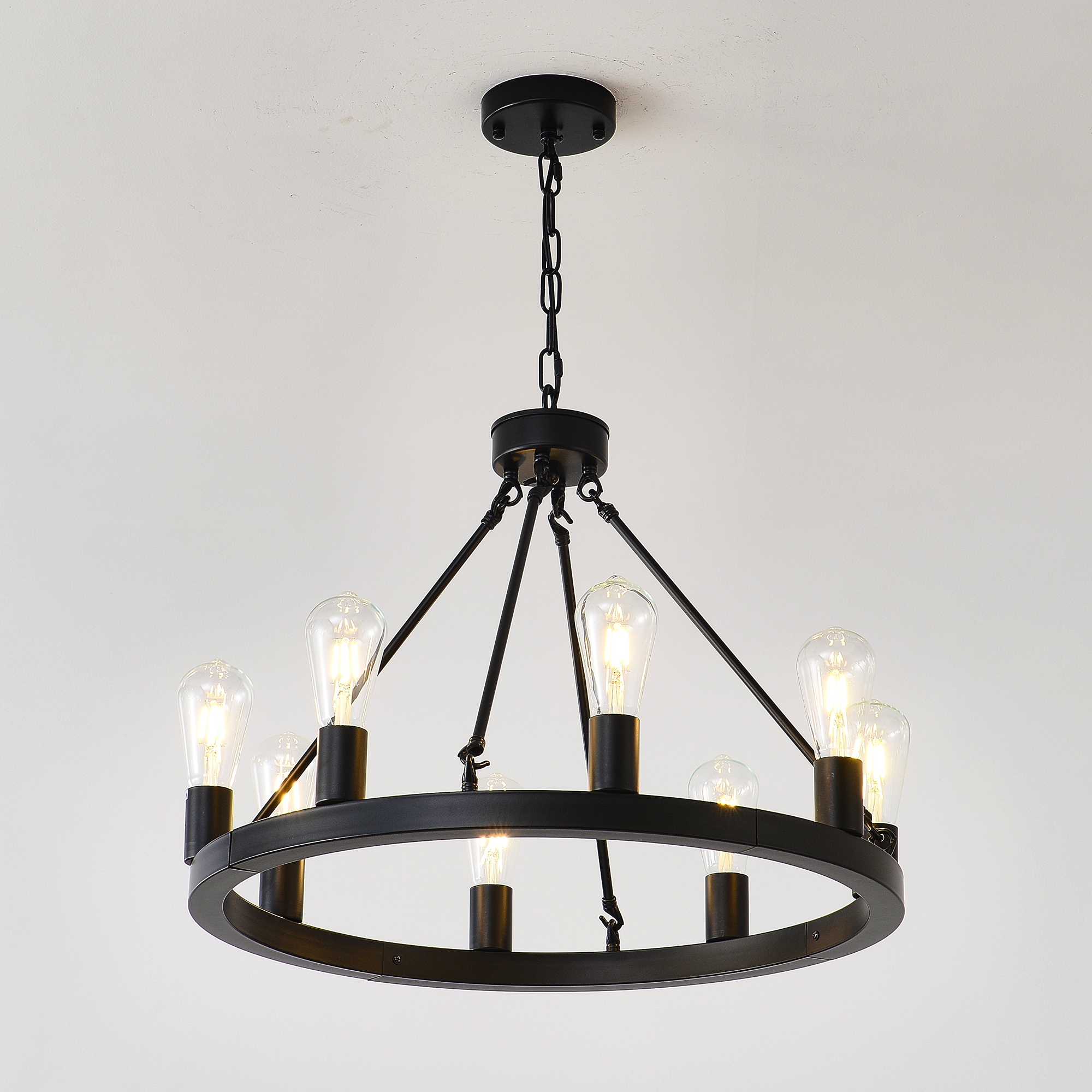Product Name:8-Light (No Bulbs) Matte Black Wagon Wheel Chandelier Farmhouse Modern Small Round Chandelier for Living Room Kitchen Island Foyer Hallway Entryway Bedroom Dining Room Light Fixture Ceiling Hanging