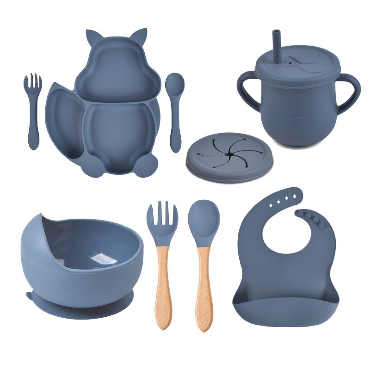 Specifications: B squirrel dinner plate silicone bowl Cup with straw bib pure silicone spoon pure silicone fork wooden handle spoon wooden handle fork snack cup lid, rabbit dinner plate silicone bowl Cup with straw bib pure silicone spoon pure silicone fork wooden handle spoon wooden handle fork