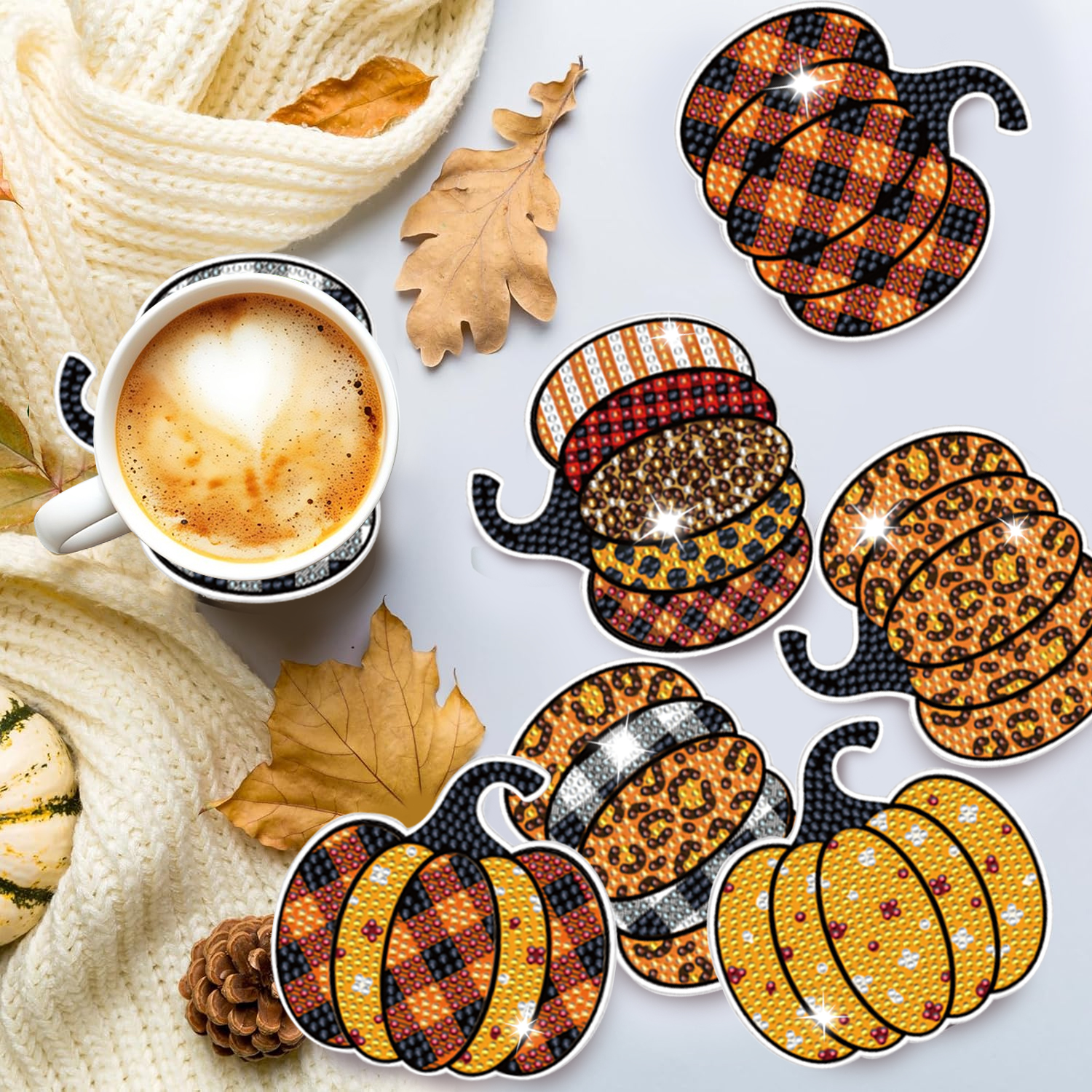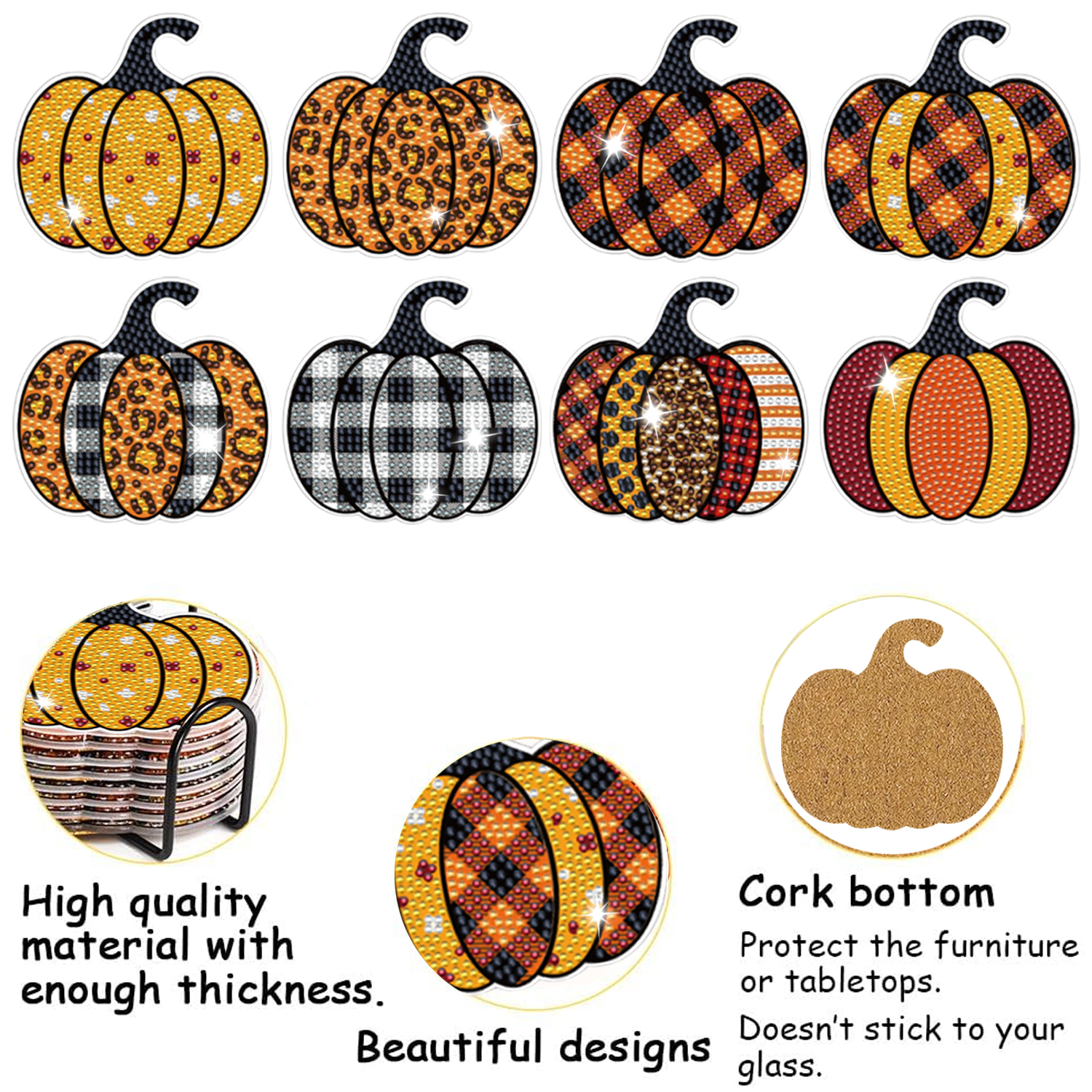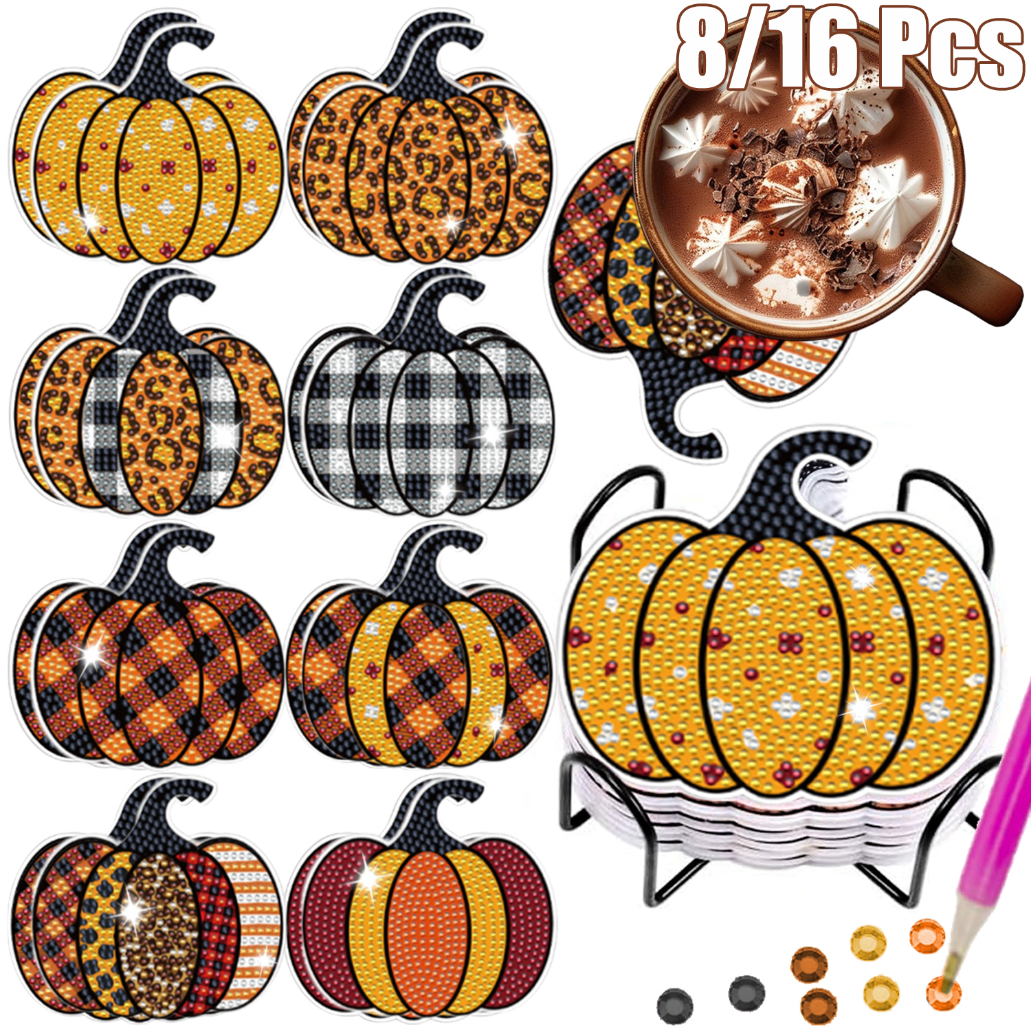 Package contents: 8 Pcs Fall Pumpkin Rhinestones Art Coasters Kits