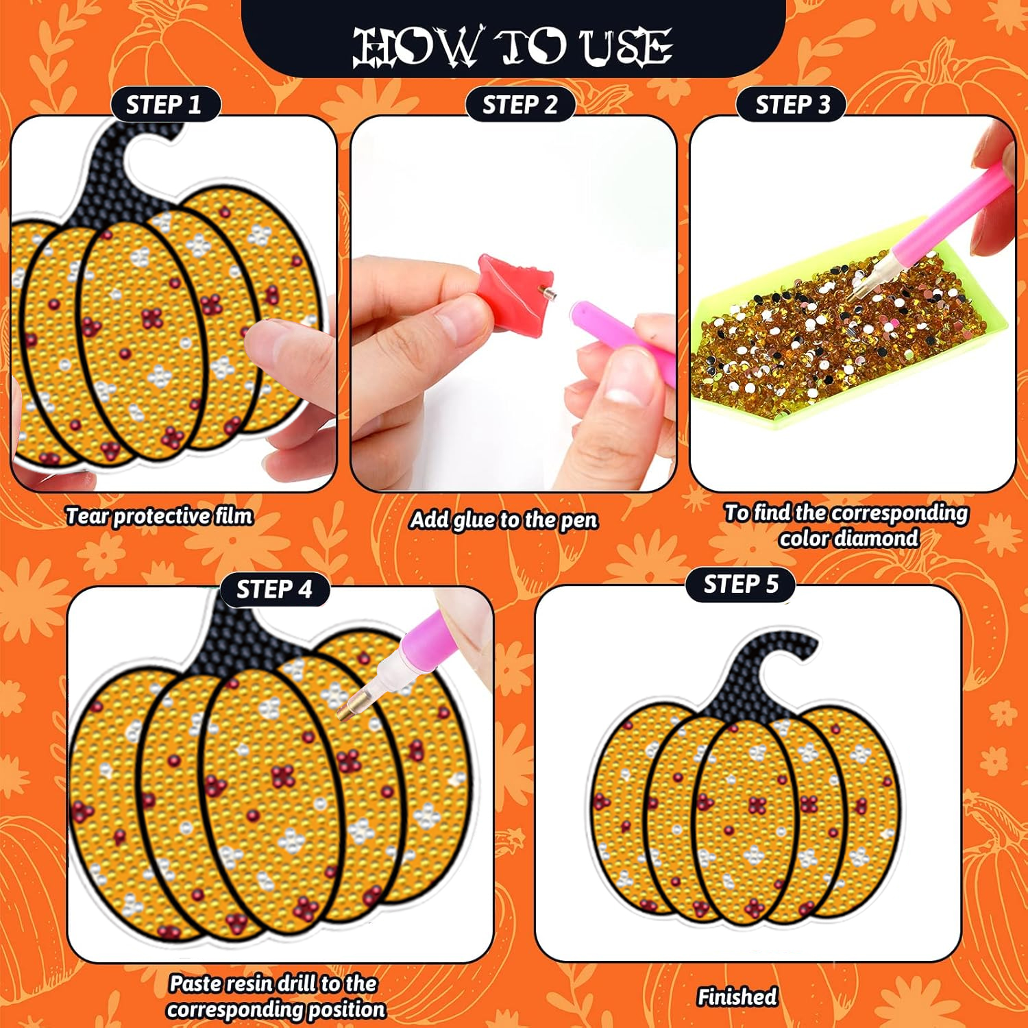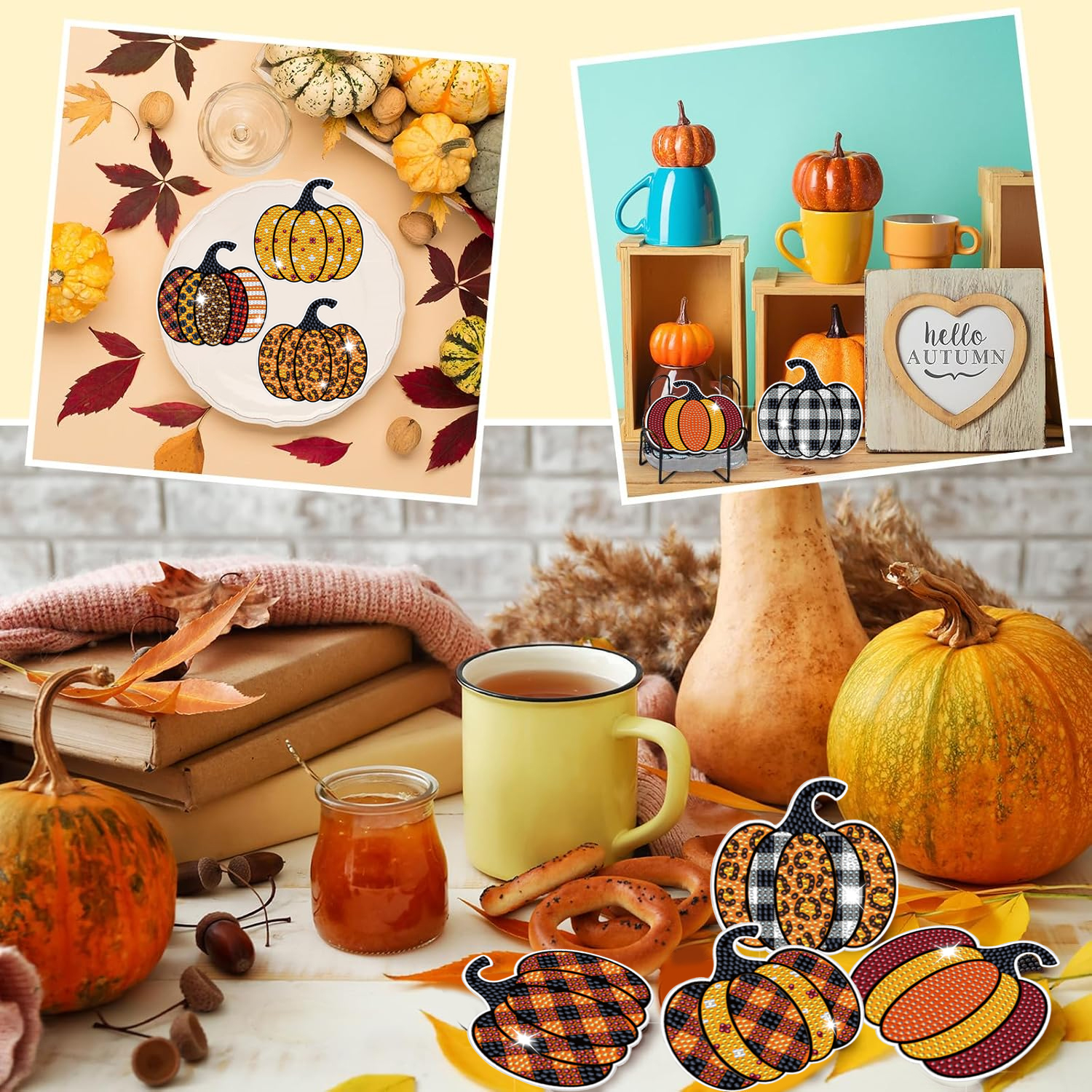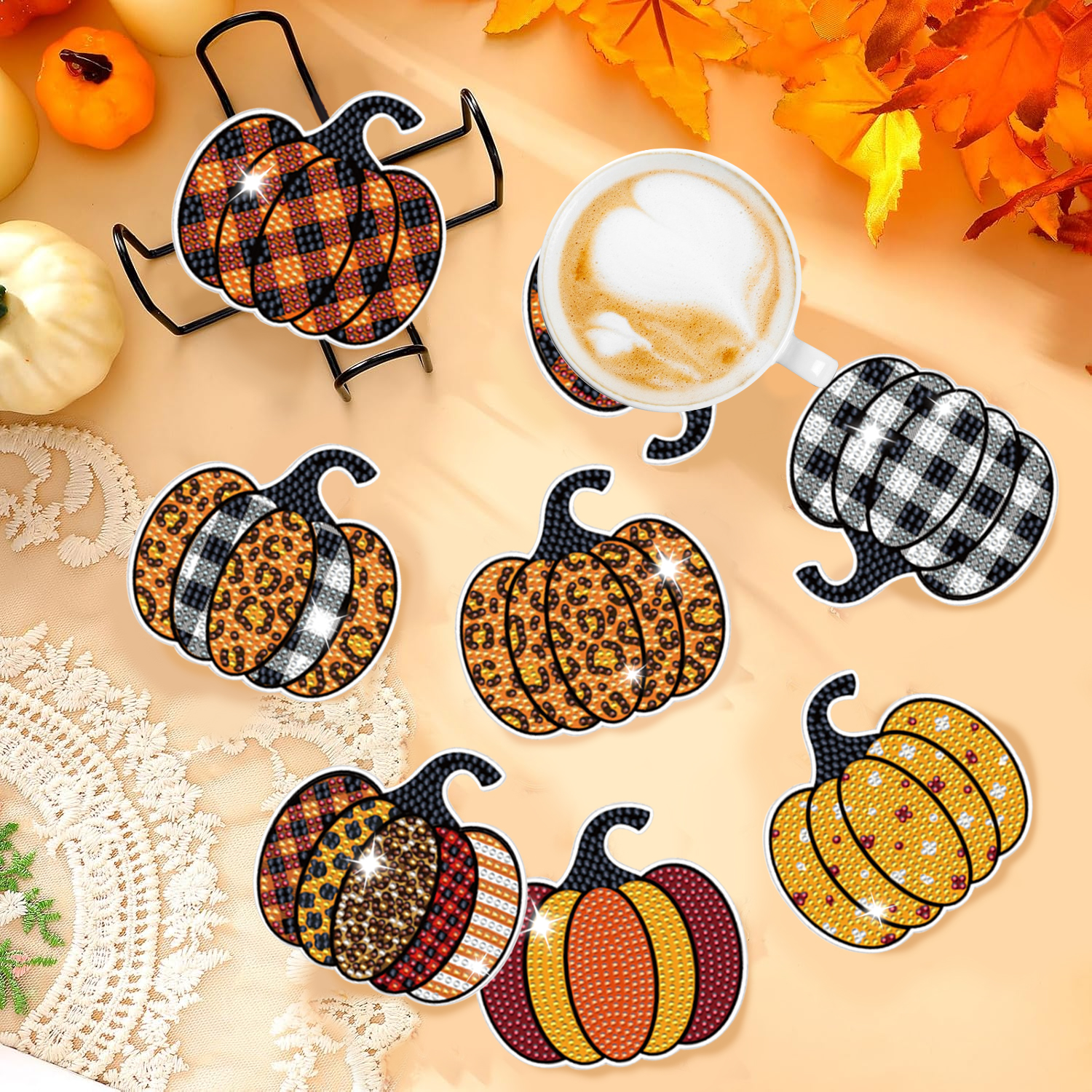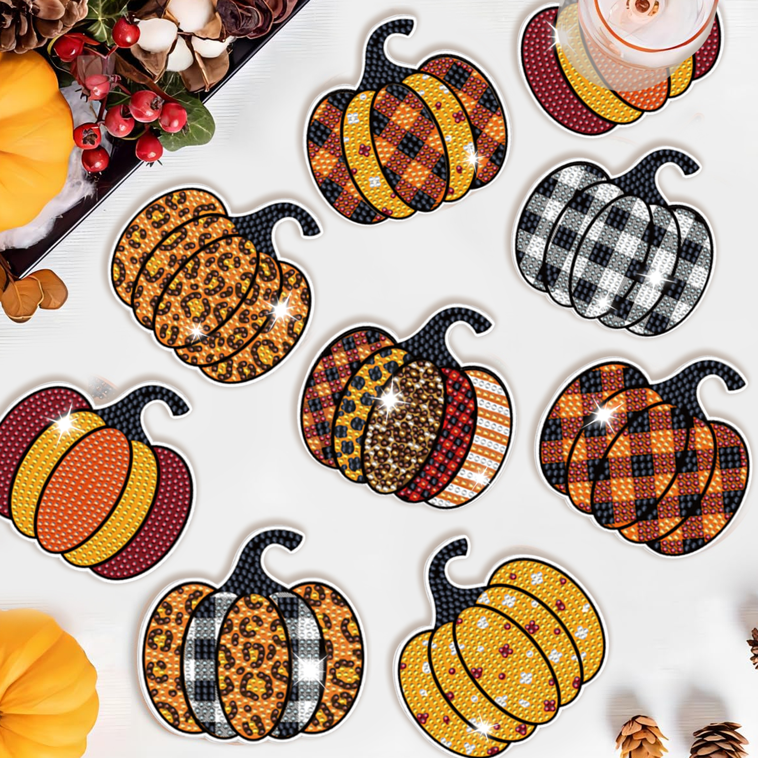 Package contents: 8 Pcs Fall Pumpkin Rhinestones Art Coasters Kits
