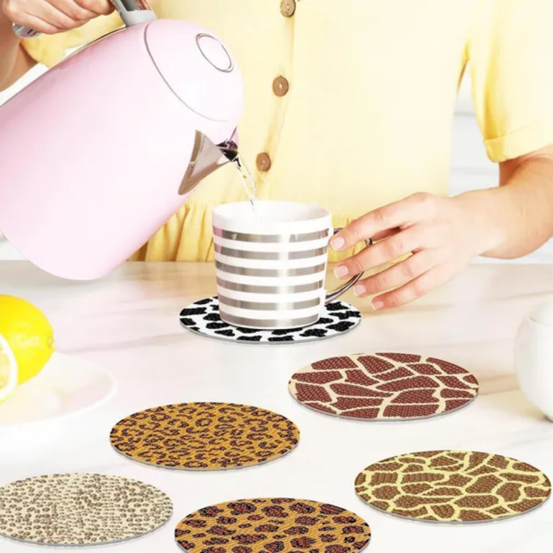 Package contents: 8 Pcs Wild Animals Rhinestones Art Coasters Kits