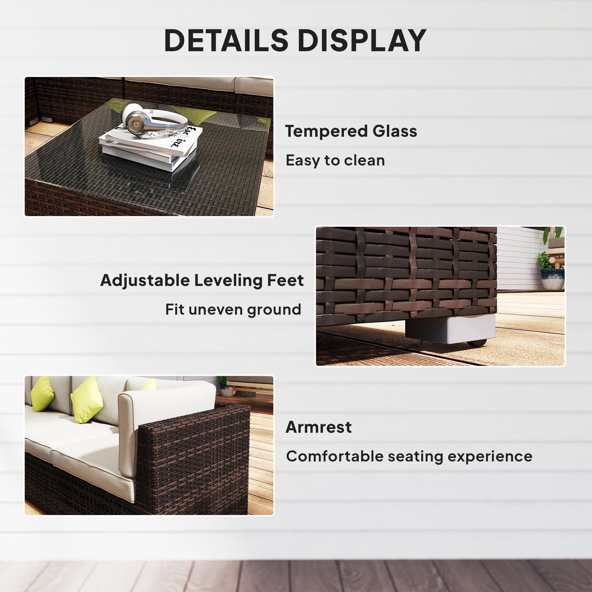 • Material Used: PE rattan, Aluminium frame, Tempered glass