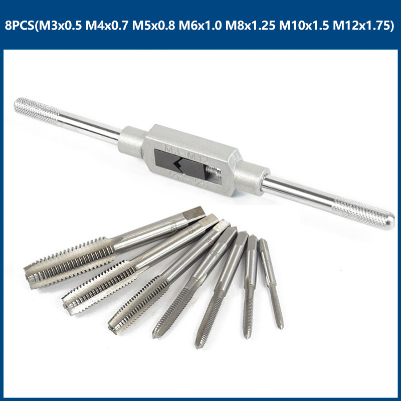 Product information:Model: 8-piece tap metric set (M3-M12 with hinge) Applicable tap specification: M3-M12