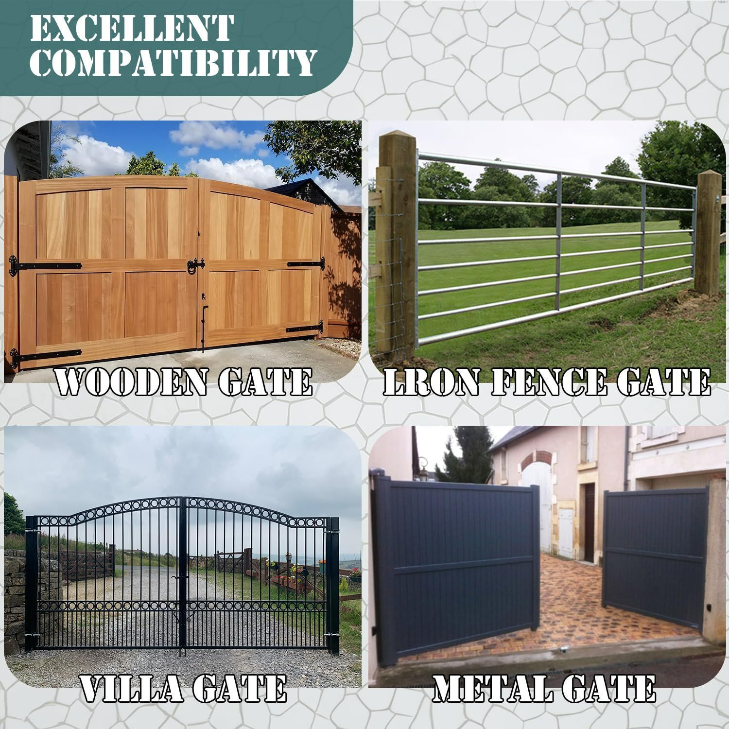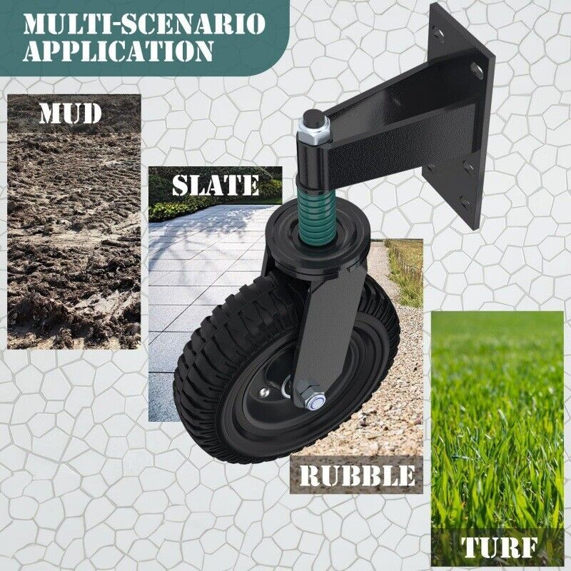 ãWide Applicationã: Fence gate caster wheel is designed to adapt to various terrains such as asphalt, concrete, brick, farms, wood gates, metal gates, or vinyl gates.