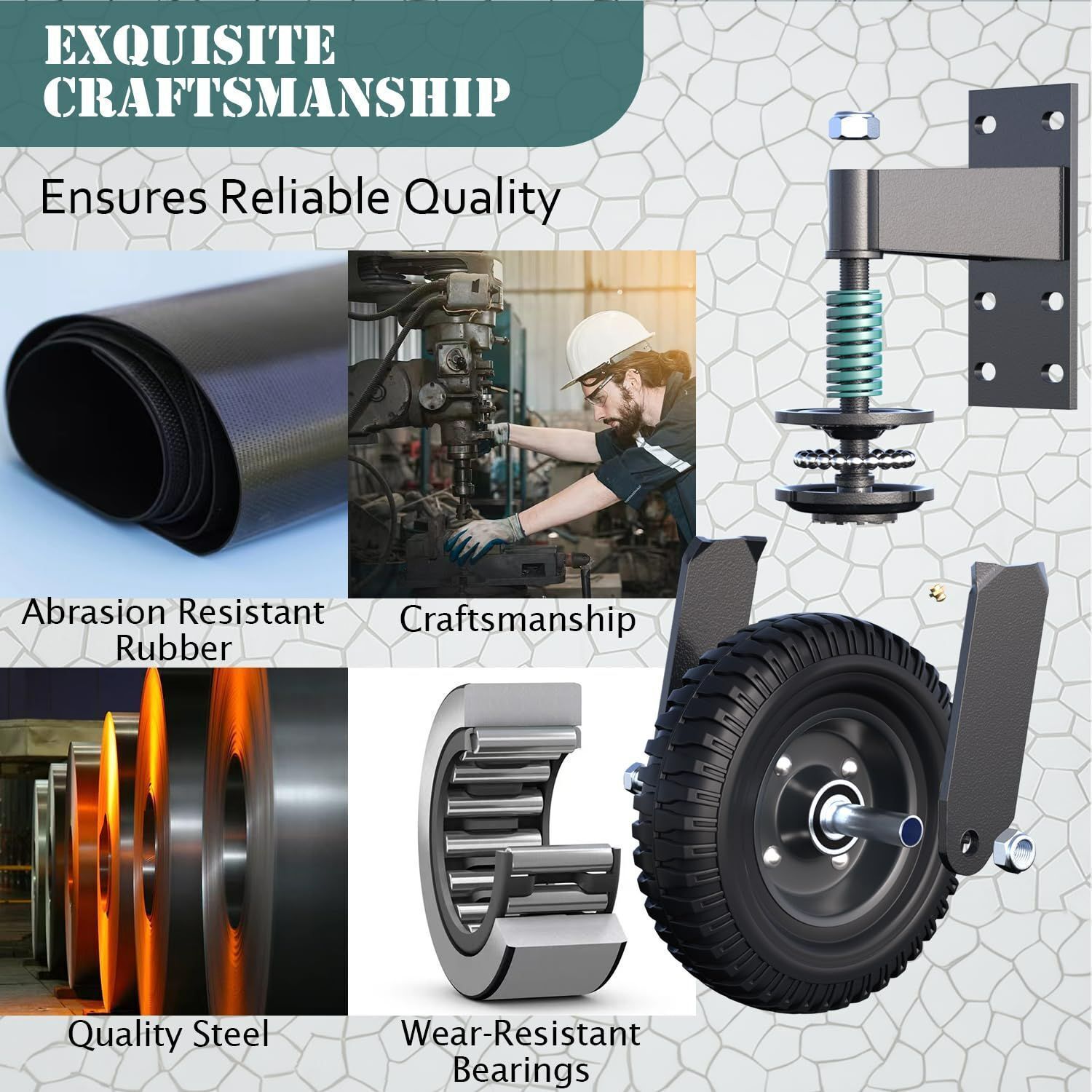 ãSpring Shock Absorptionã: Equipped with a spring shock absorption feature, this caster wheel provides smooth movement even on uneven surfaces.