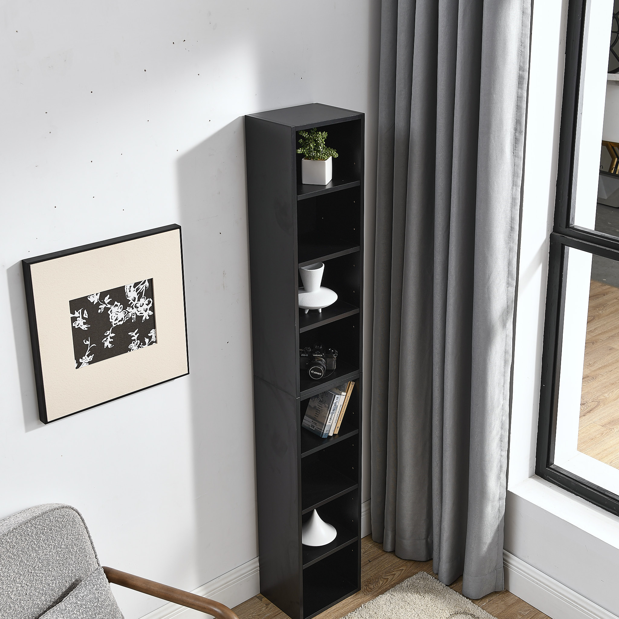 Product Name:8-Tier Media Tower Rack, CD DVD Slim Storage Cabinet with Adjustable Shelves, Tall Narrow Bookcase Display Bookshelf for Home Office,Multi-functional double-decker bookcase