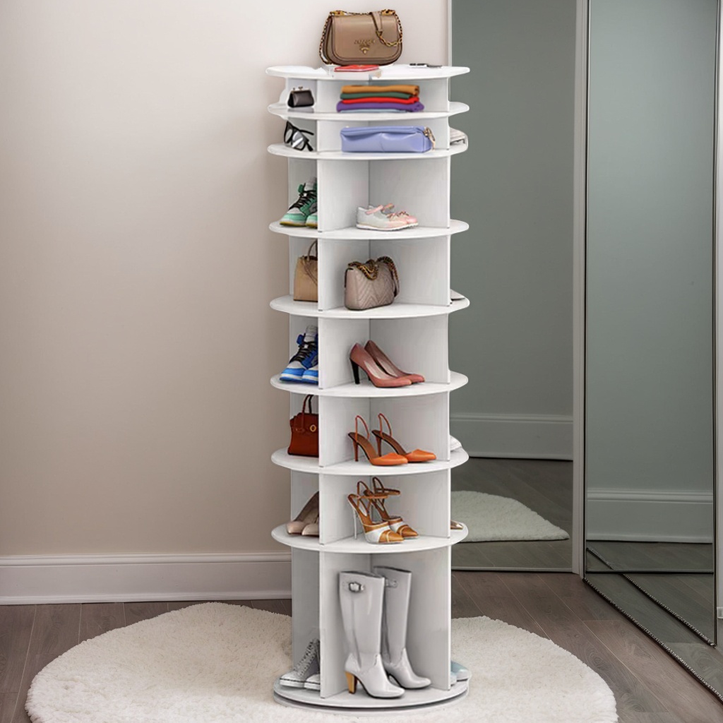 Product Name:8 Tier Rotating Shoe Rack Tower, Spinning Shoe Display, Shoe Organizer,360 Shoe Rack Storage Round Carousel, Vertical Handbag Rotate Shoes Closet Organization (WHITE)