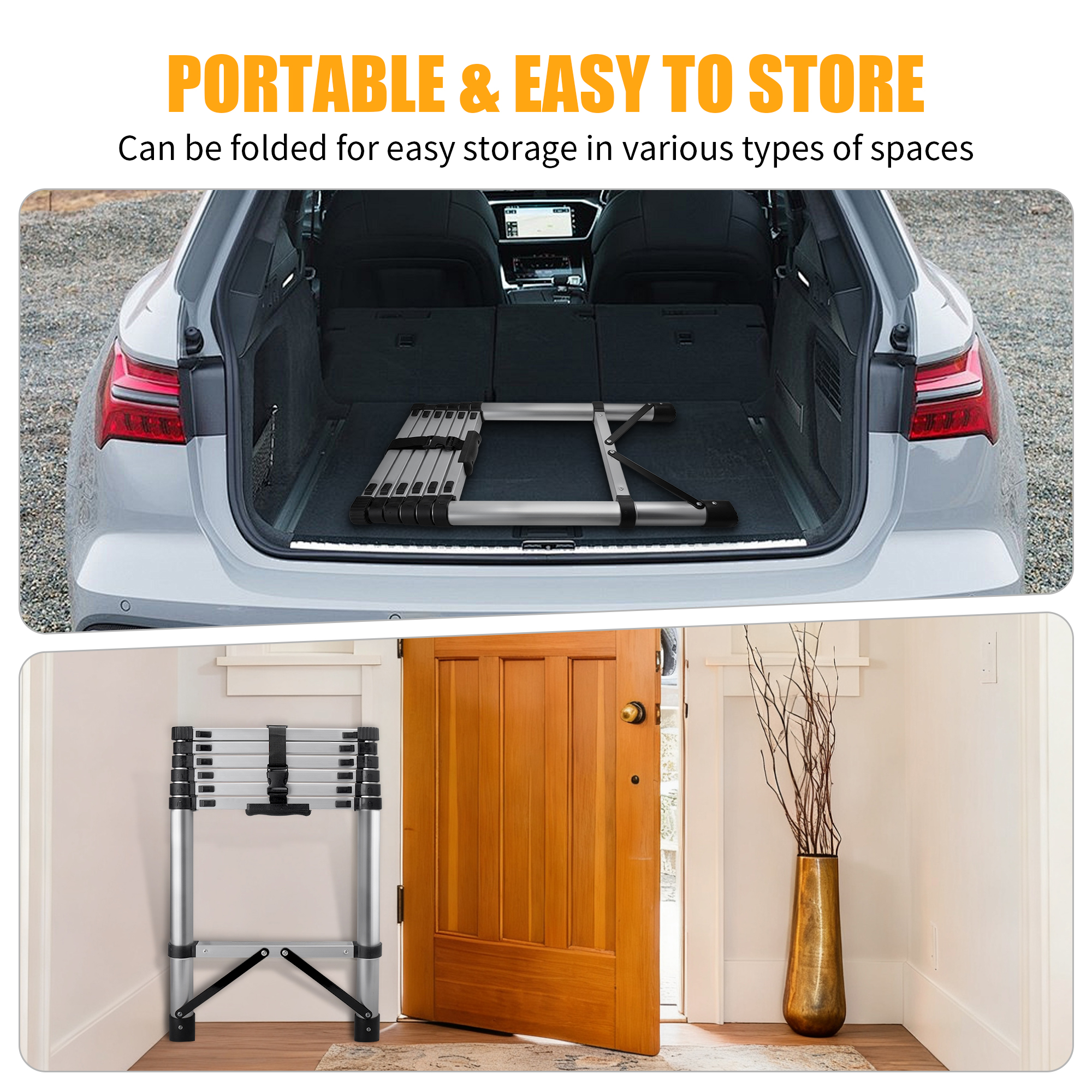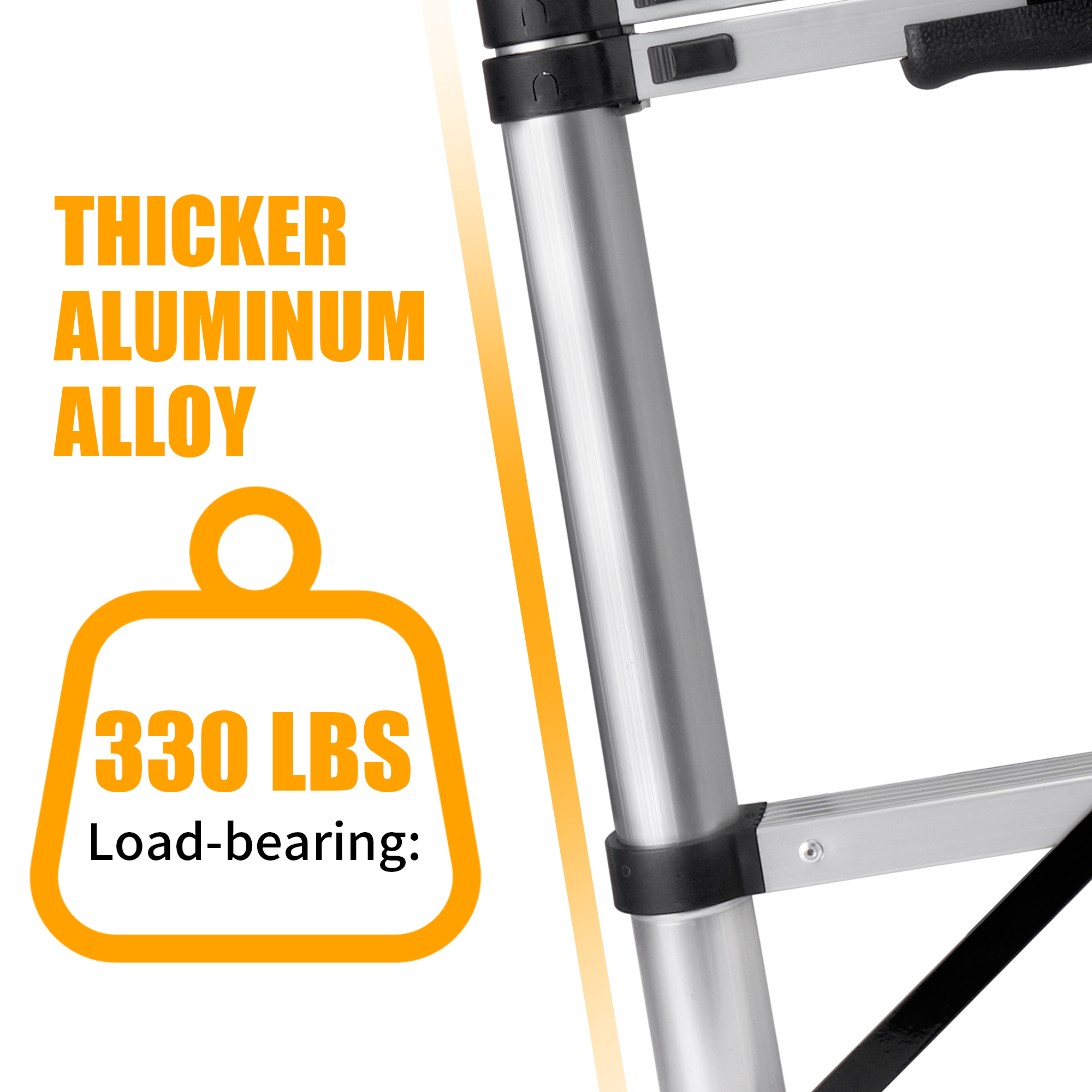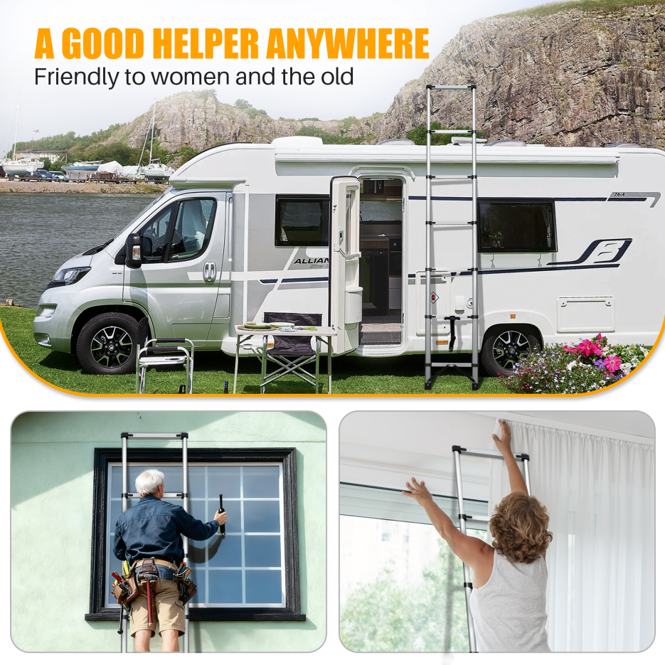 • 【Durable Aluminum Alloy】The telescoping ladder is made of high strength aluminum alloy with anodized that resists rust waterproof and ensures long-lasting. It’s lightweight, sturdy, stability, convenient to use, store and carry around. Max load 150kg/330lb.