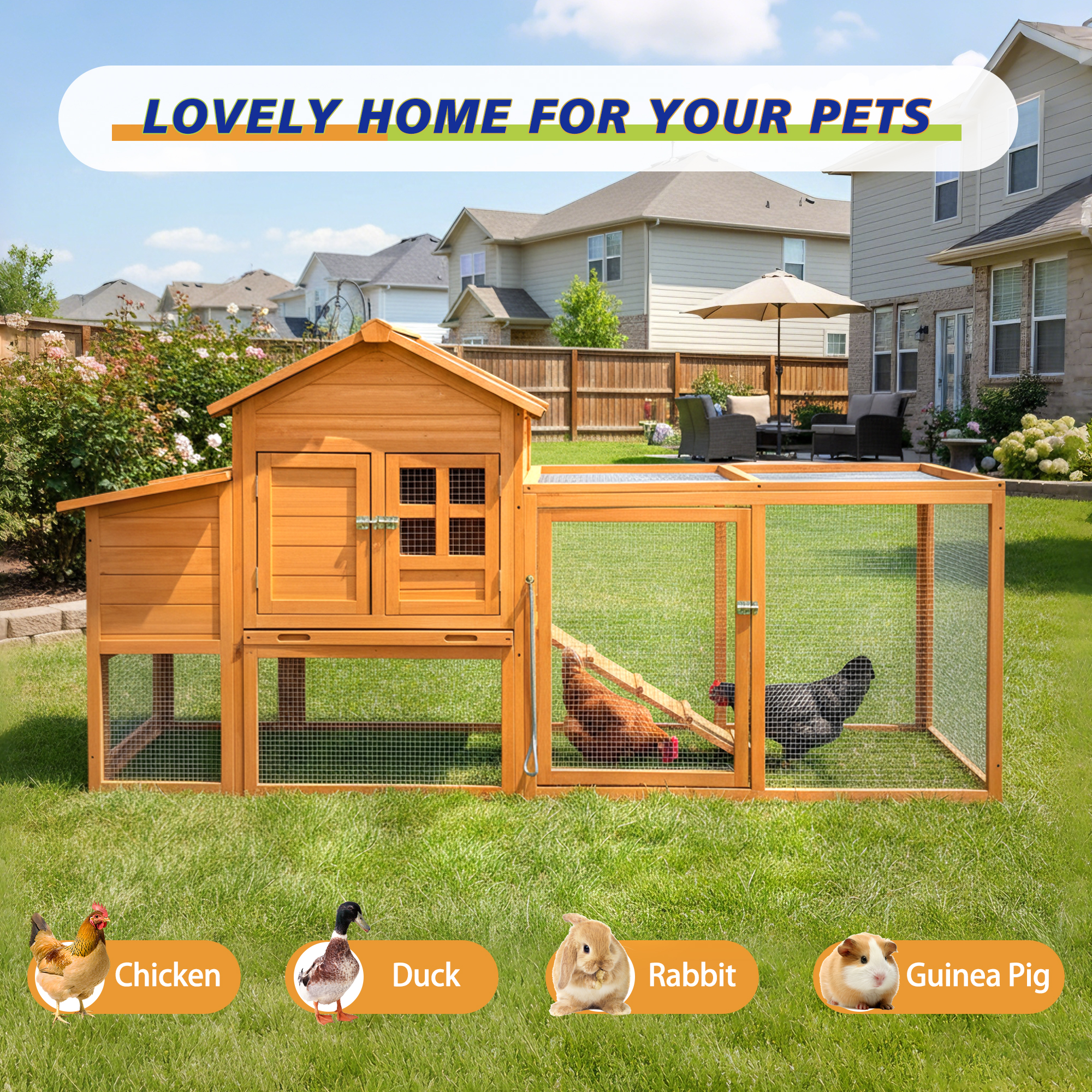 Product Name:80" Chicken Coop with Nest Box and Removable Tray, Hen House for 2-6 Chickens, Outdoor Weatherproof Small Animal Cages