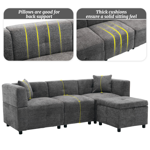 - Comfortable Sectional Sofa: The sofa is made of modern linen fabric with a hardwood frame as the basic structure. The linen fabric is comfortable and not easy to pilling, fading.