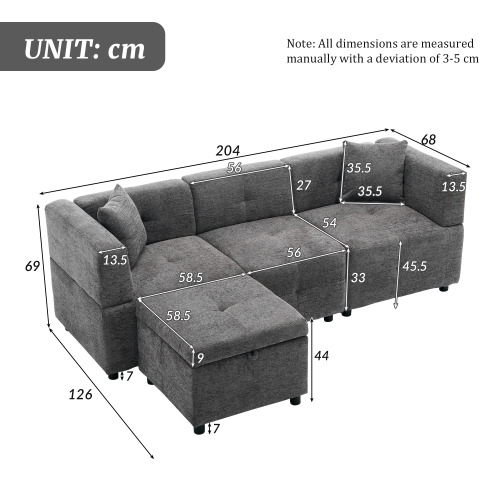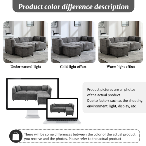- 4 Packages: The Sectional Sofa is shipped in 4 packages, so they may be arrived separately in different time.