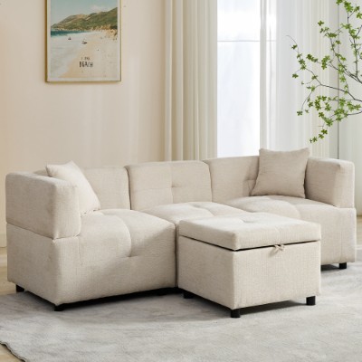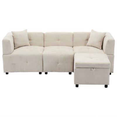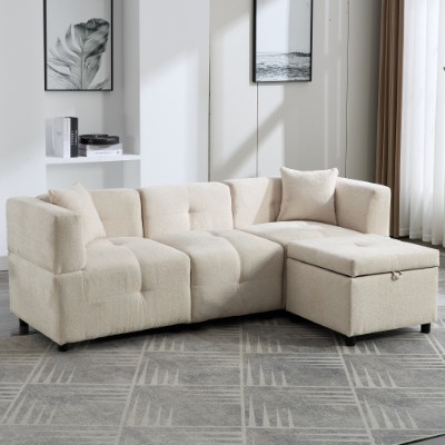 Product Name:80" Sectional Sofa Couch with Removable Storage Ottoman, Fabric Sofa for Living Room Apartment, L-Shaped Sofa with 2 Pillows for Home/Apartment/Office Living Room, Beige