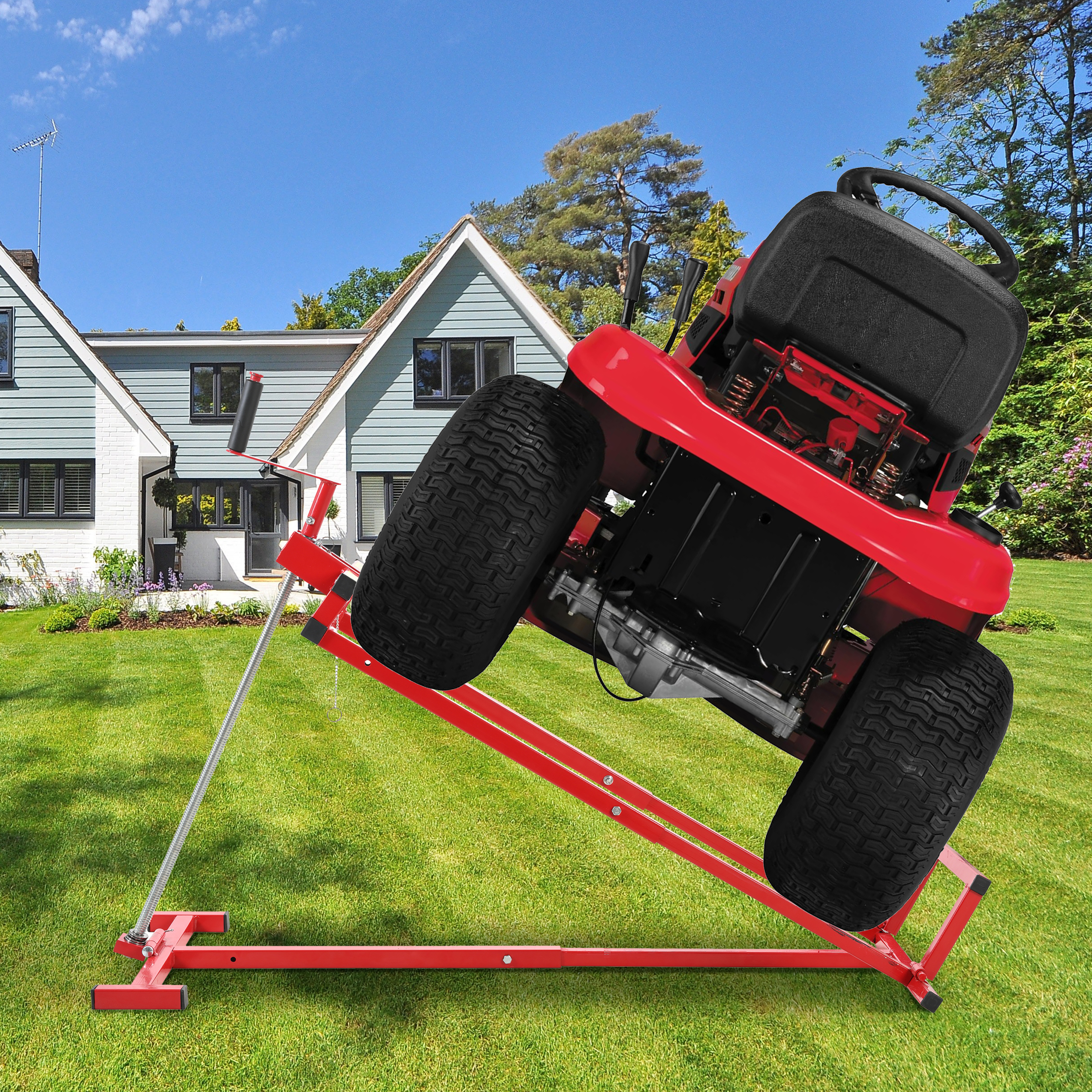 Product Name:800 Lbs Easy Lawn Mower Lift for Riding Tractors , Capacity Lawn Tractor Lifter, Ride-on Mower, Cleaning Aid, Universal, Lawn Tractor Lift, Lawn Tractor + 45° Tilt Adjustable, red