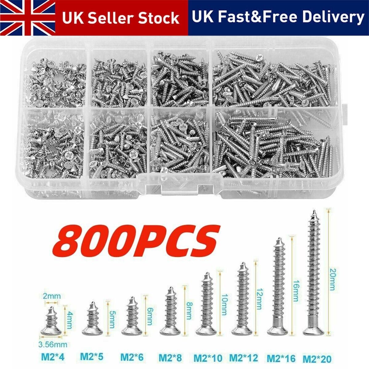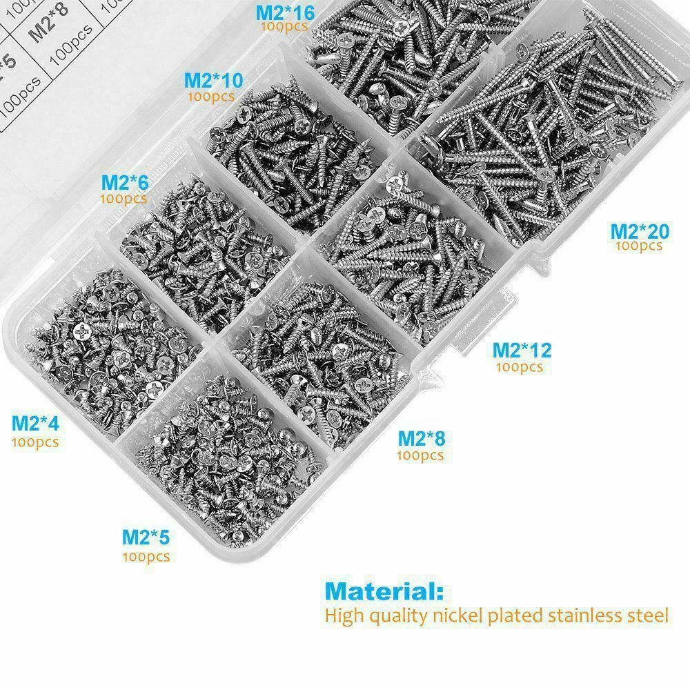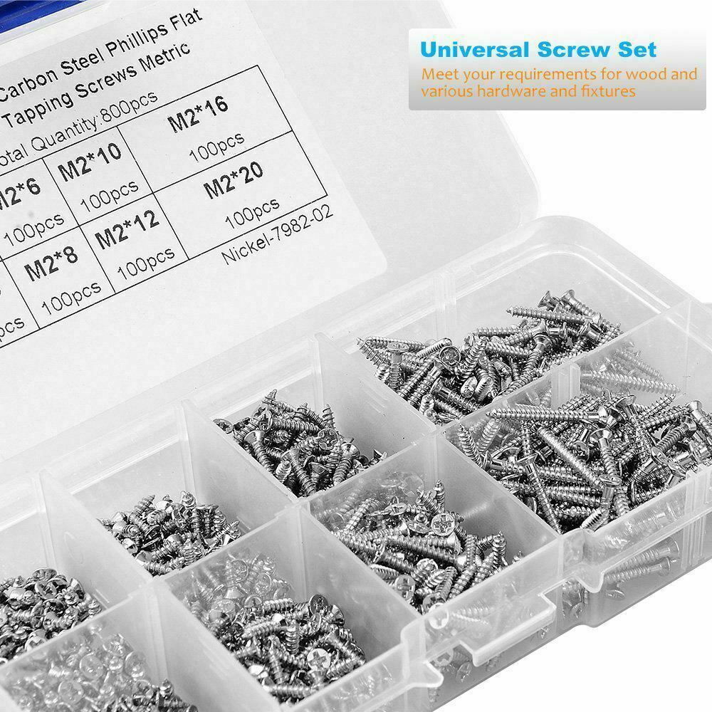 800 PCS Stainless Steel Wood Screw Assortment Self Tapping Small Metal Screws UK