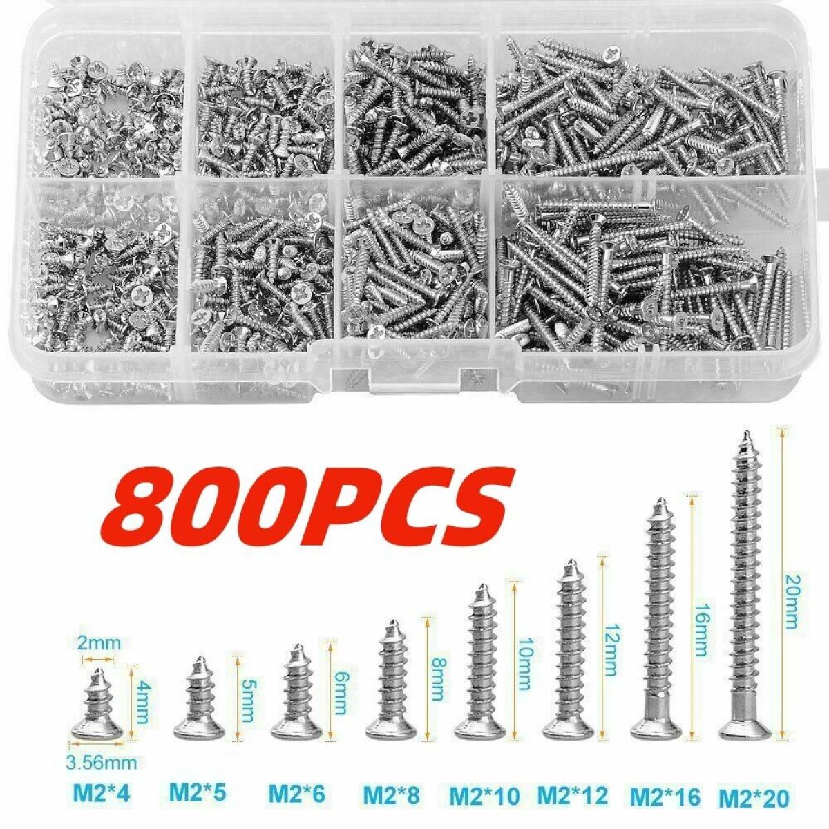 -You'll get 800 pieces M2 screws packed by a plastic organizer box with grids, the screws are placed according to a different classification.