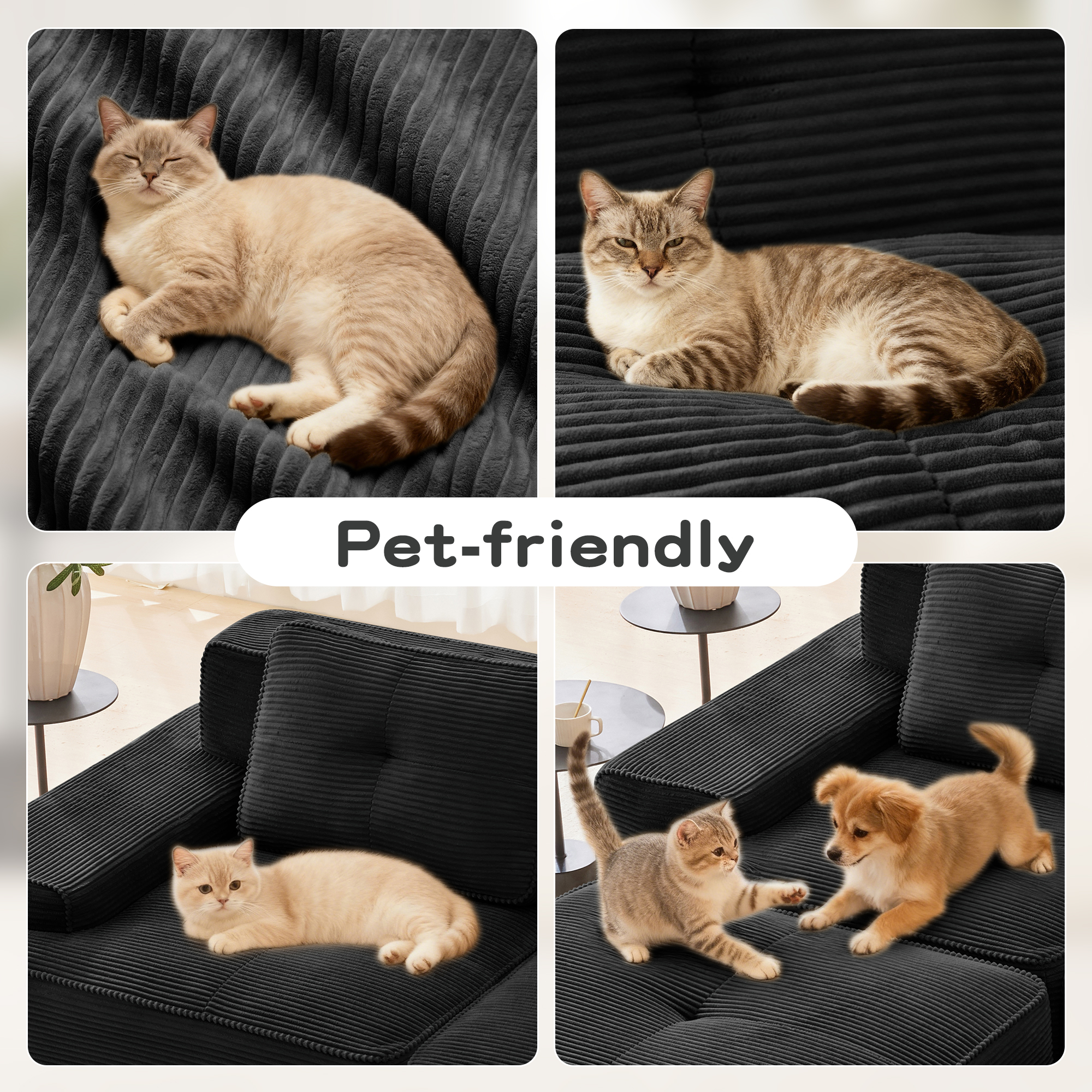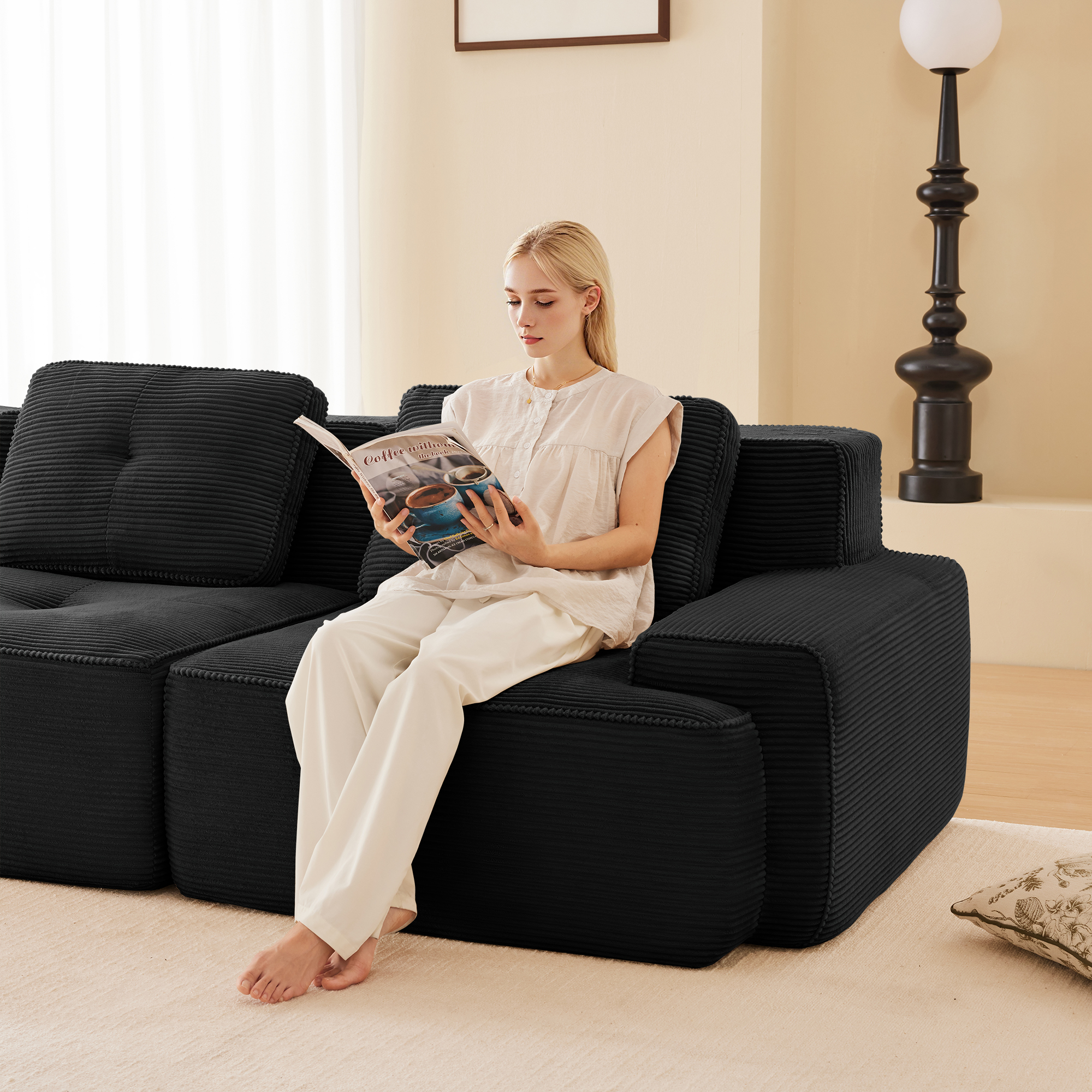 • Ergonomic design:This sofa features an ergonomic curved design with a seat crafted from 32D high-resilience sponge, offering rapid rebound and exceptional durability. Paired with skin-friendly, breathable, and wear-resistant corduroy fabric, it delivers cloud-like comfort. The extra-wide and deep seat design,fatigue-free extended sitting. Every time you lean back, it adapts to your body like it was made just for you.