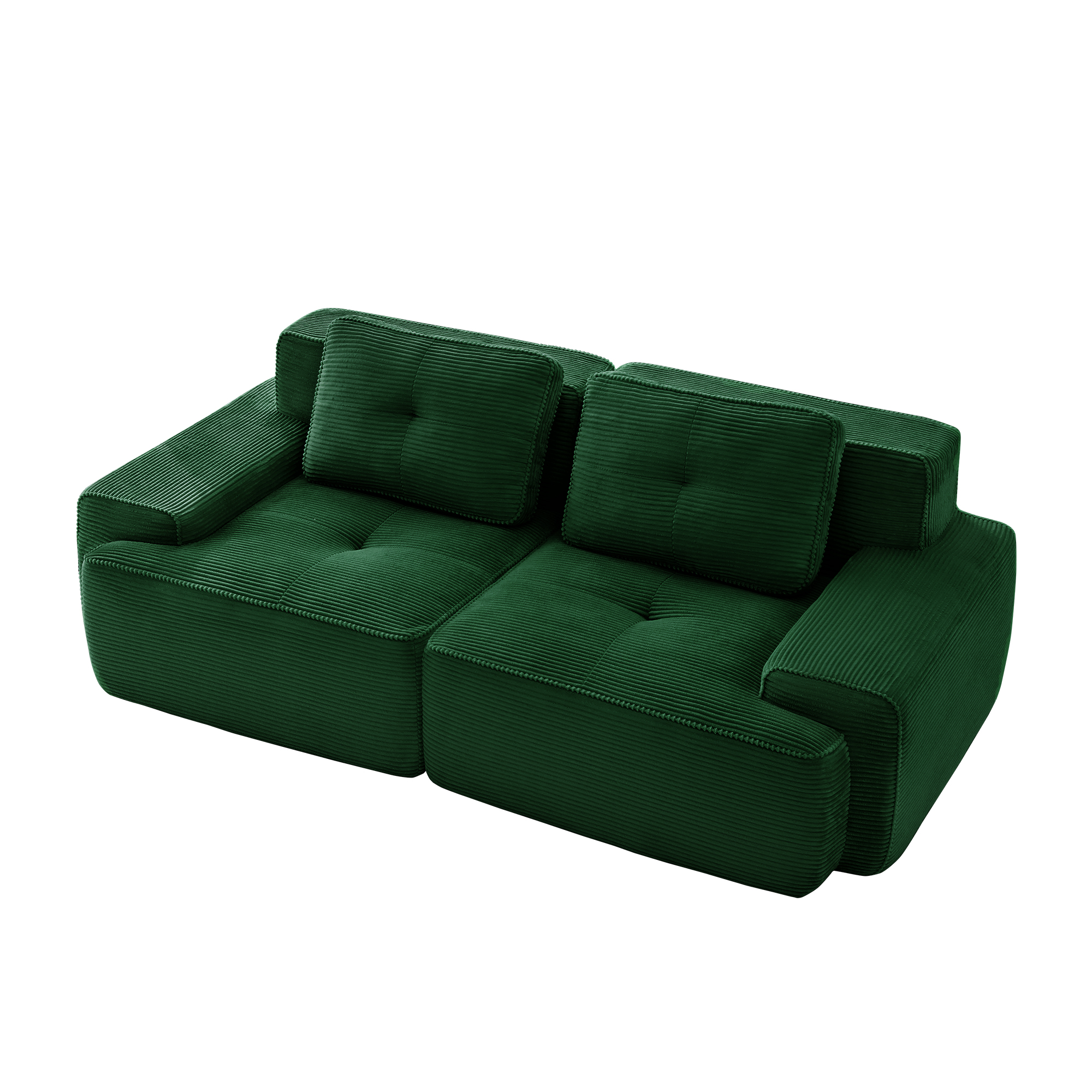 Product Name:82" Modern L-Shaped Modular Sectional Sofa for Living Room, Corduroy Fabric, 2-Seater Couch with Deep Seat , Pearl-like piping, Tufted Design, No Assembly, Anti-slip Design,Green