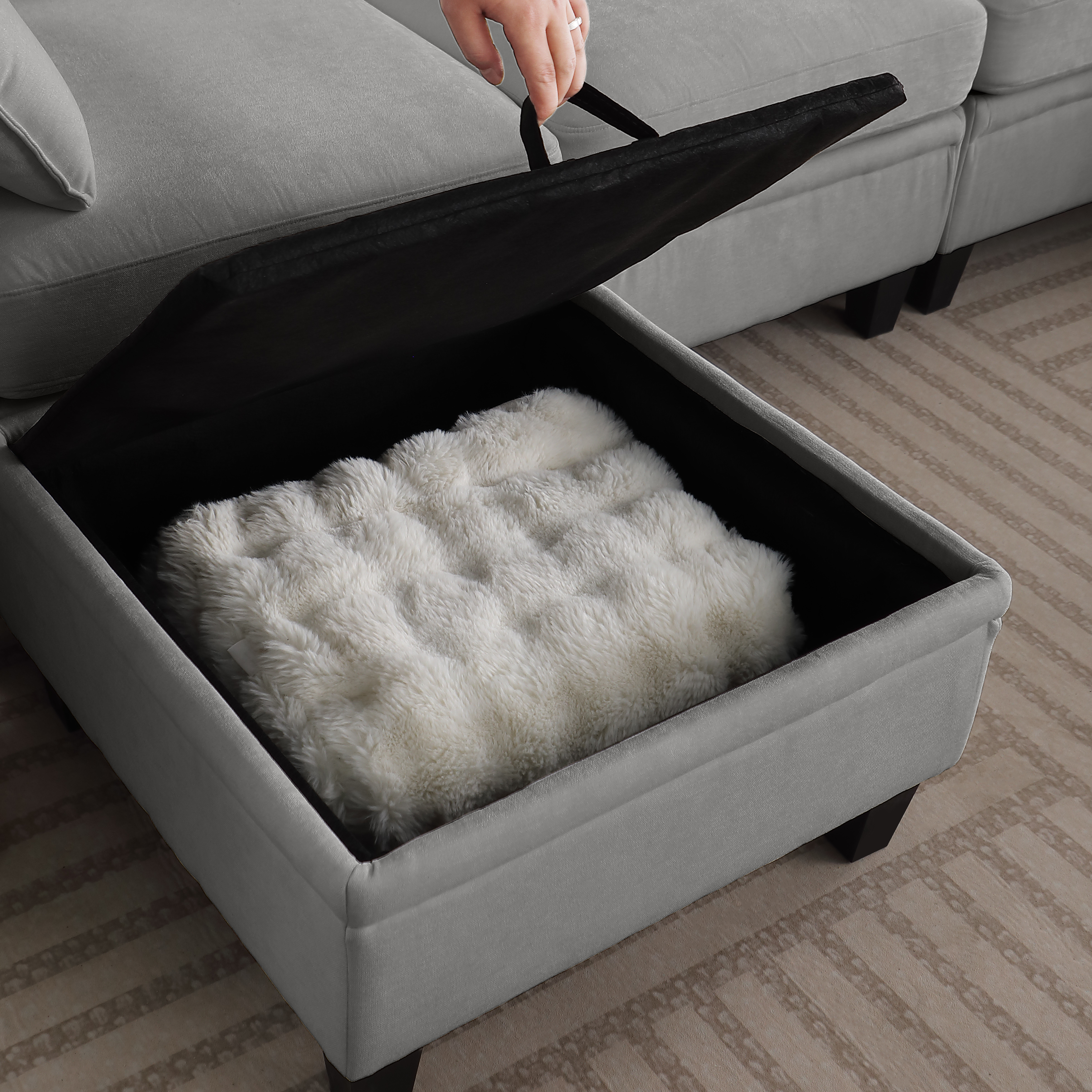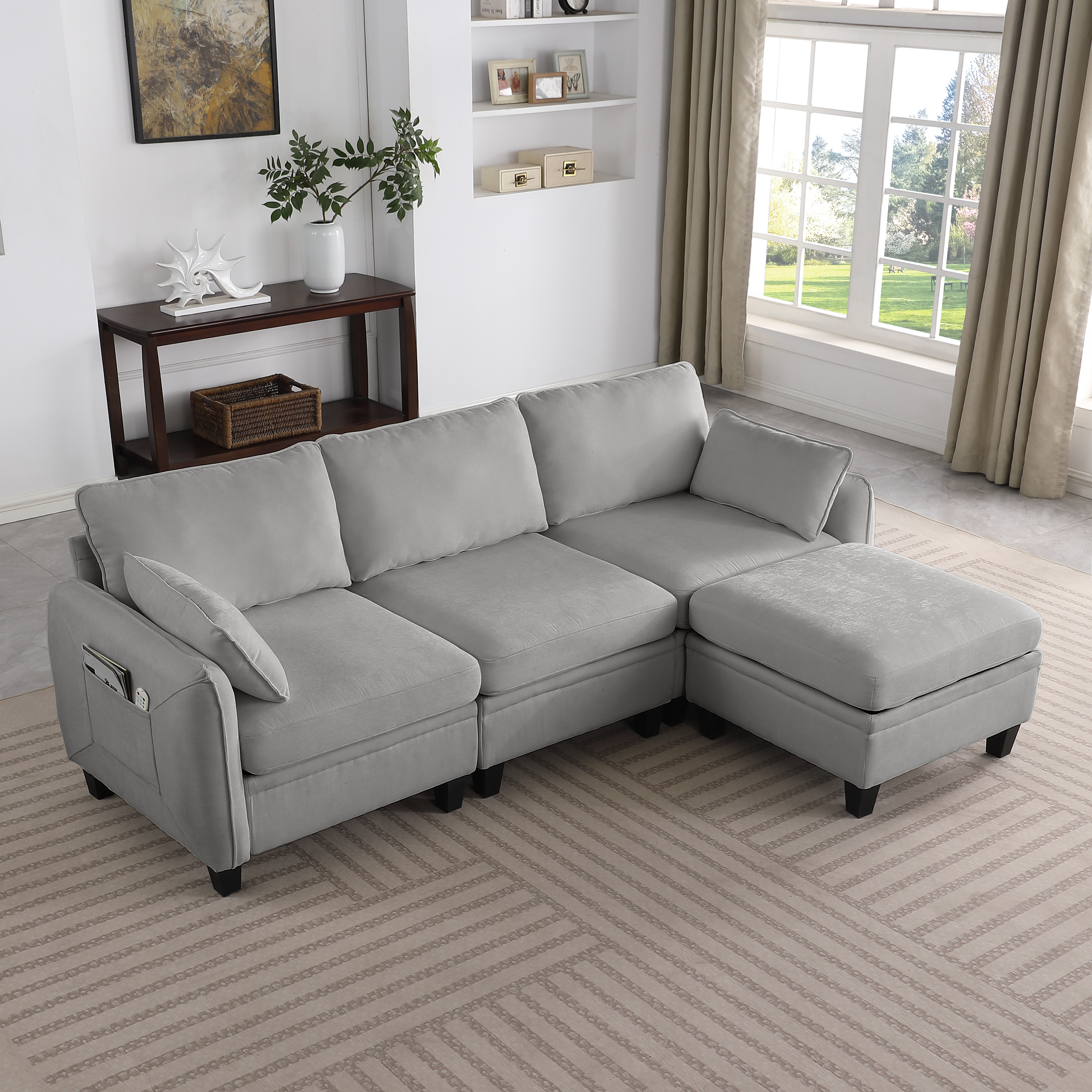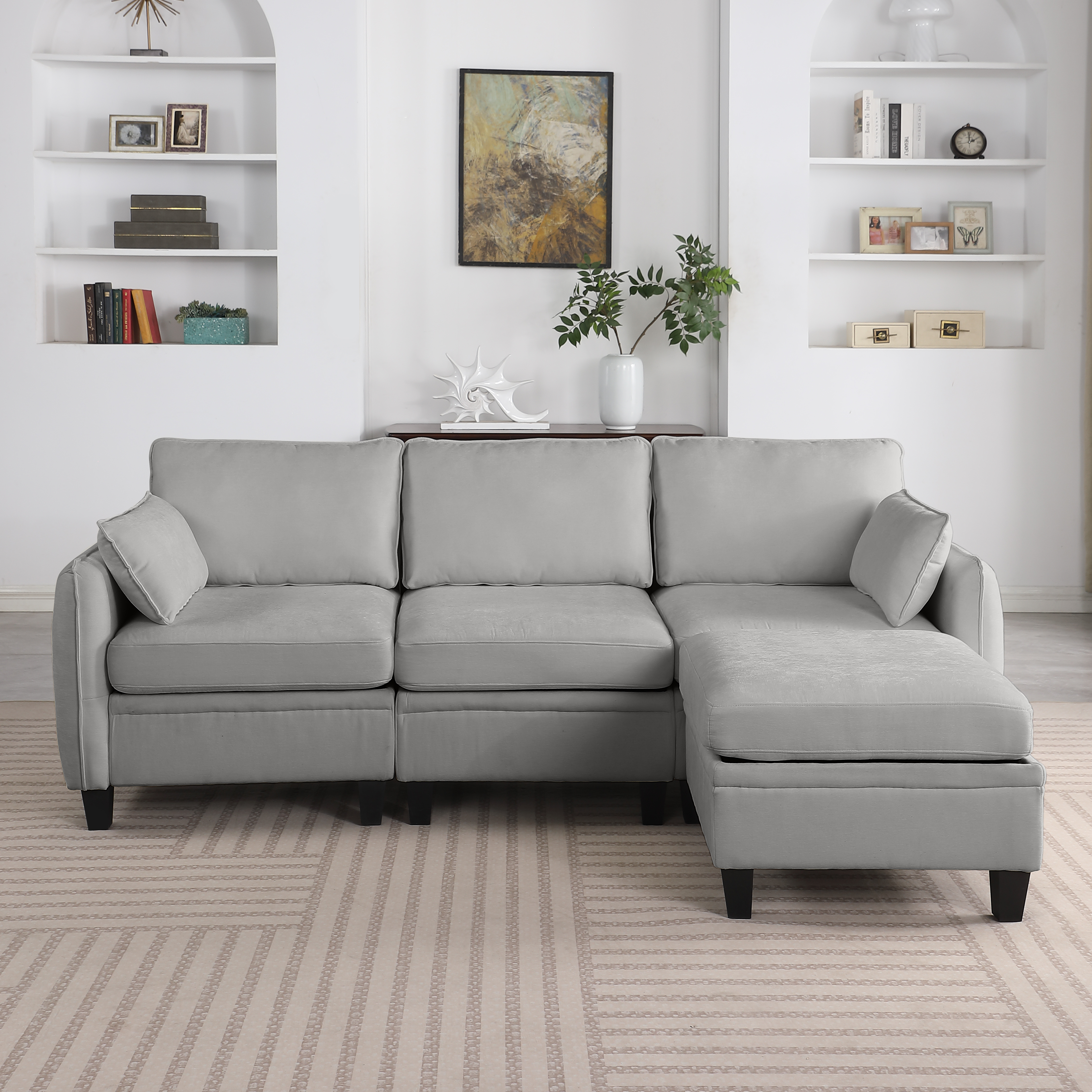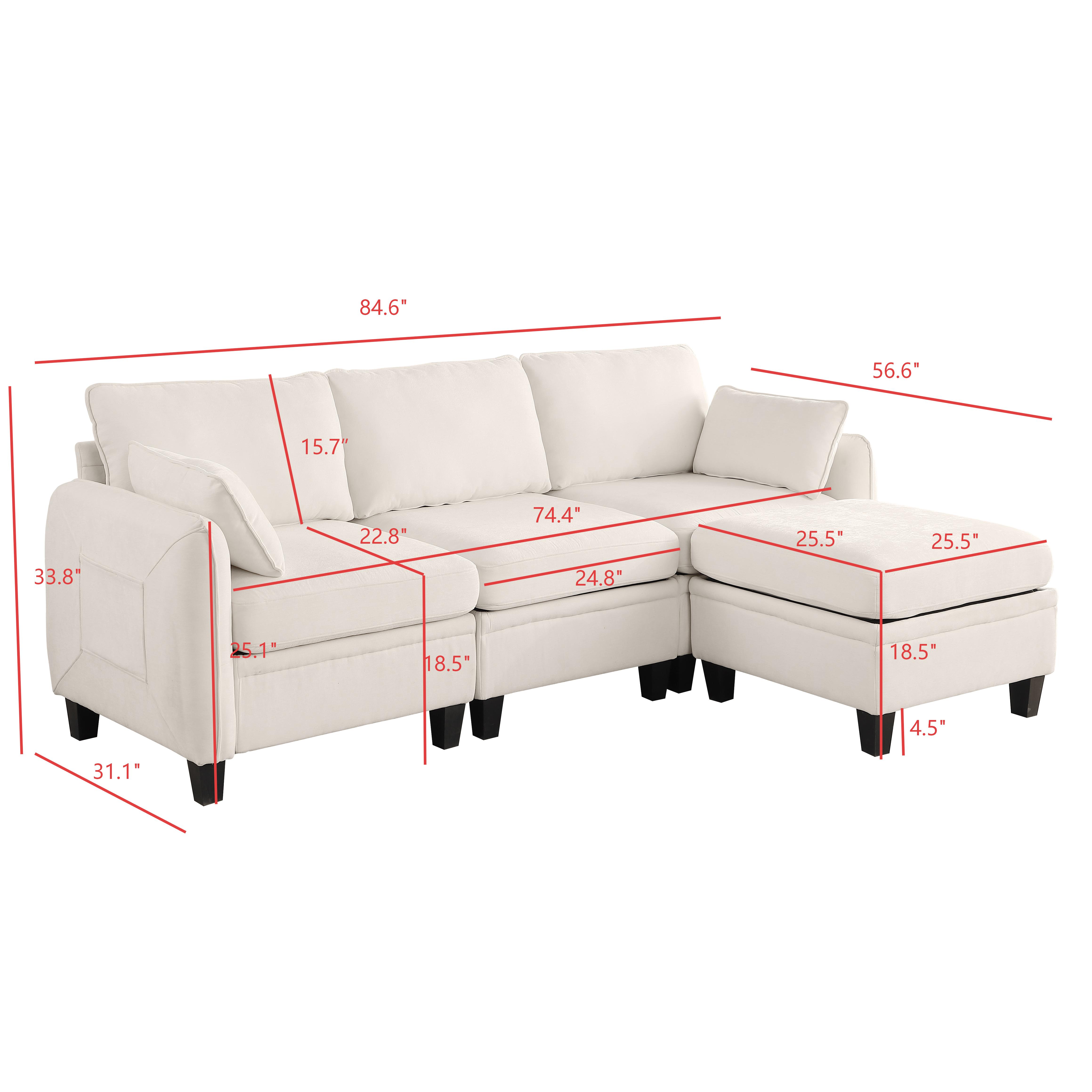 Product Name:85 Inch GRAY Chenille Modular Sectional Sofa, L-Shaped Cloud Couch with Storage Ottoman, DIY Combination for Living Room