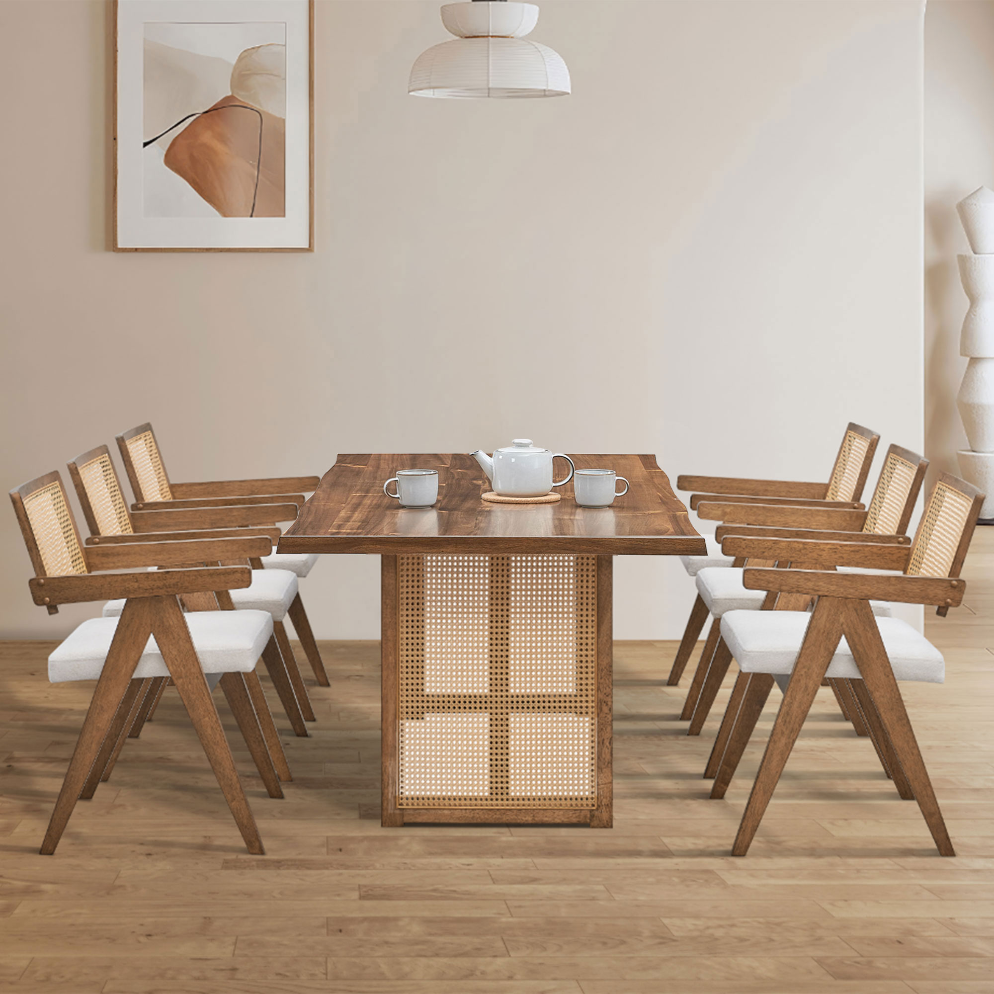 Product Name:86.61 Inch Oversize Rectangular Waves Dining Table,Wooden Dining Table for 6 Persons,Mid Century Modern Large Kitchen Table for Living Room,Bohemian Dining Table with Rattan Weave for Restaurant