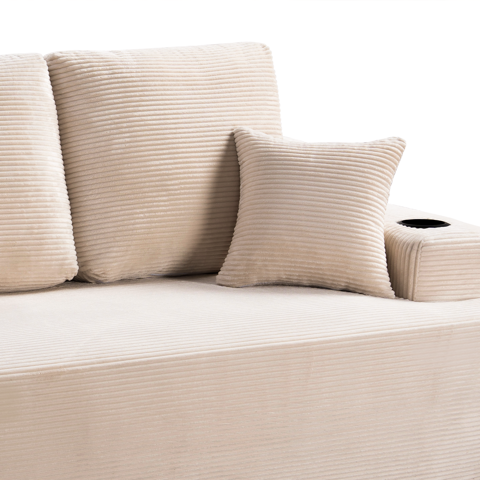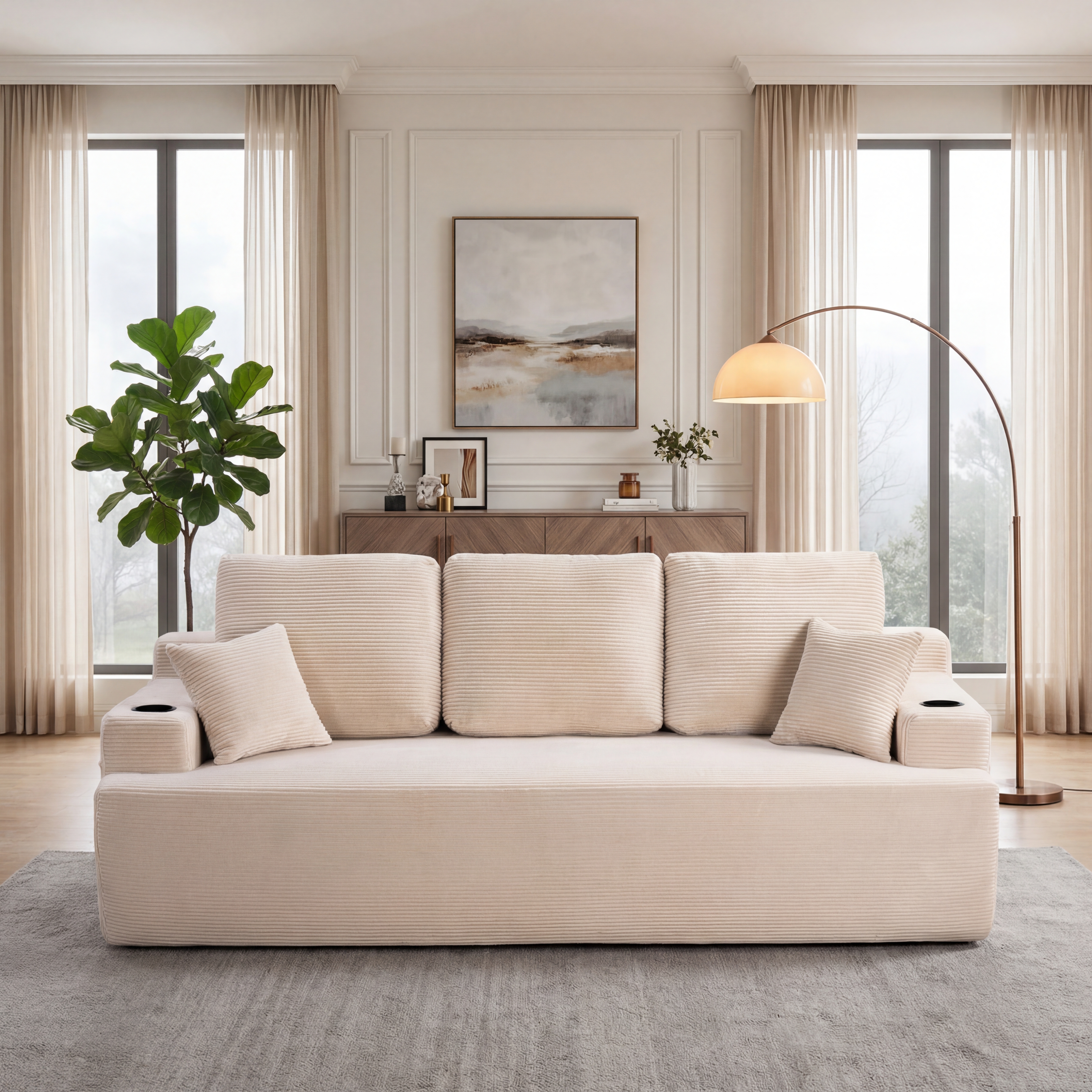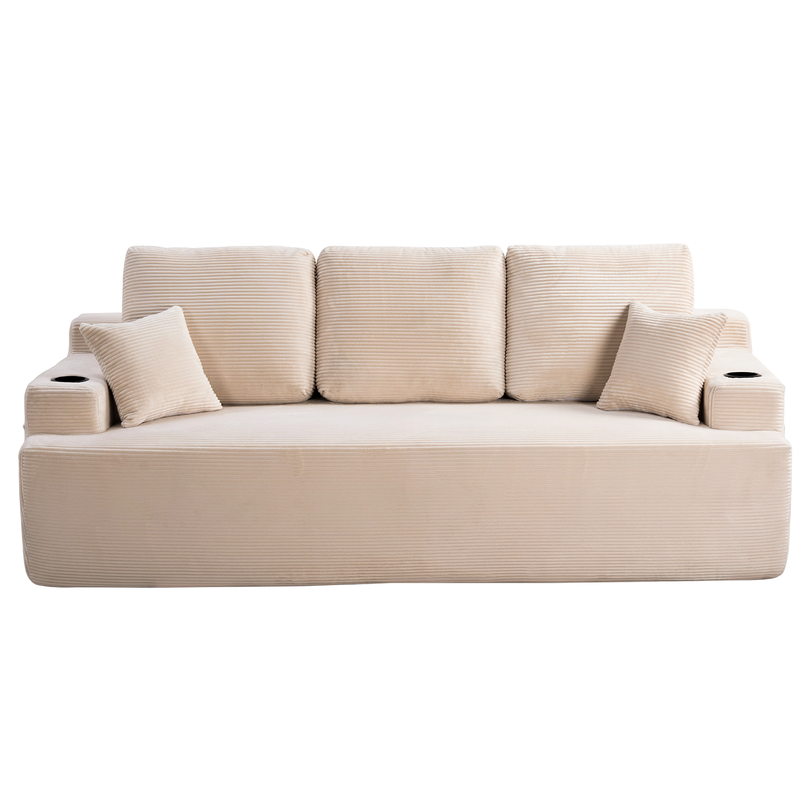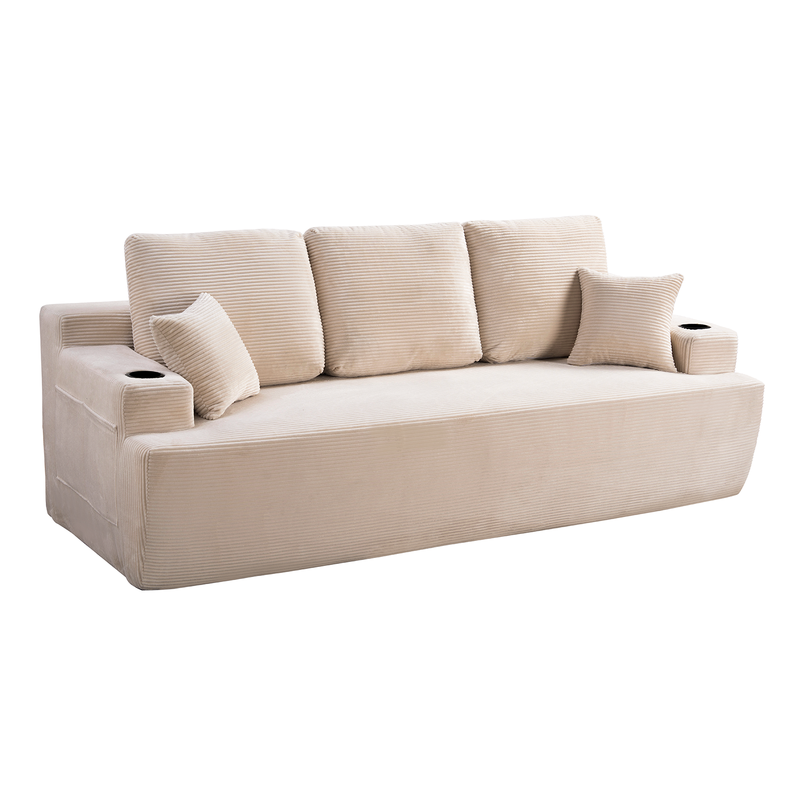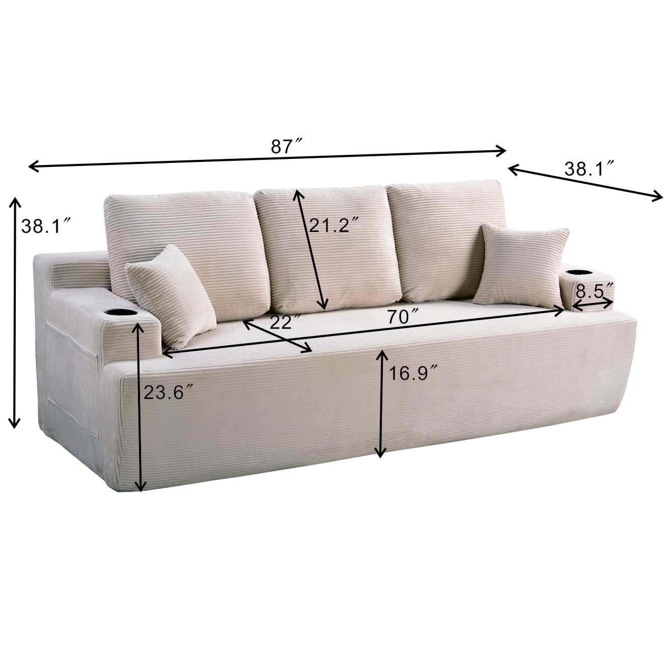 Product Name:87 in 3-Seater Sofa for Living Room, Comfy Couches with Deep Seat, Plush Corduroy Fabric with Cup Holders and Side Storage Pockets for Apartment Lounge
