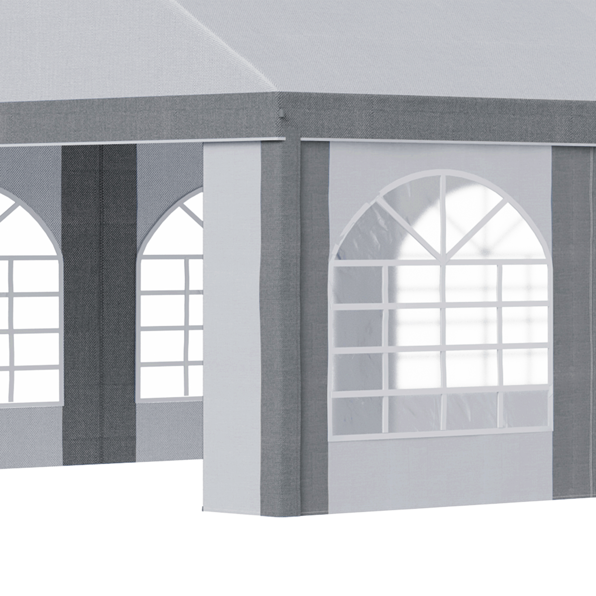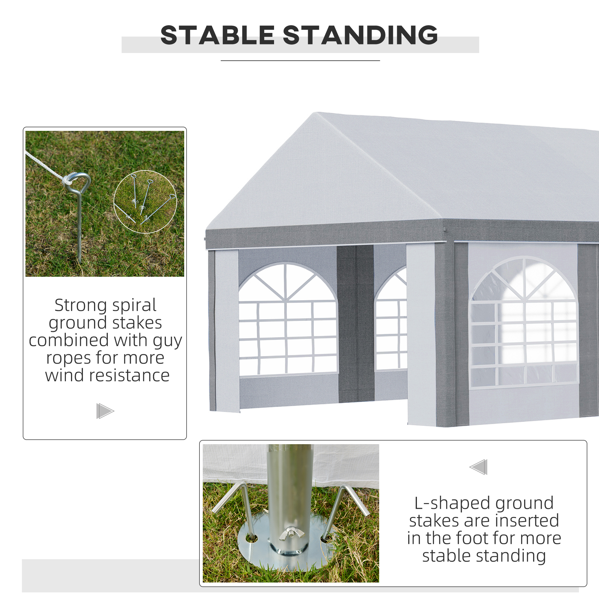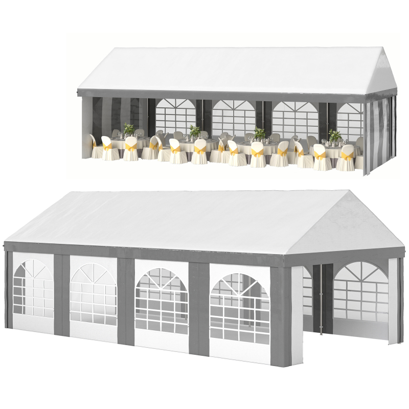 For your outdoor gatherings this season, say hello this cool stripey 4 x 8m marquee gazebo, from . A galvanised steel frame means a strong, sturdy core; it's fitted with a thick plastic canopy for a safe inner shelter. The roof shields you inside from direct sunlight and light wind - ideal for keeping you and guests sheltered when needed. All the walls can be taken off when you want to open up on hotter days - with windows to allow sunlight in when they're fixed in place.