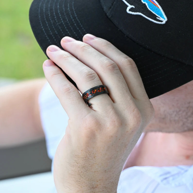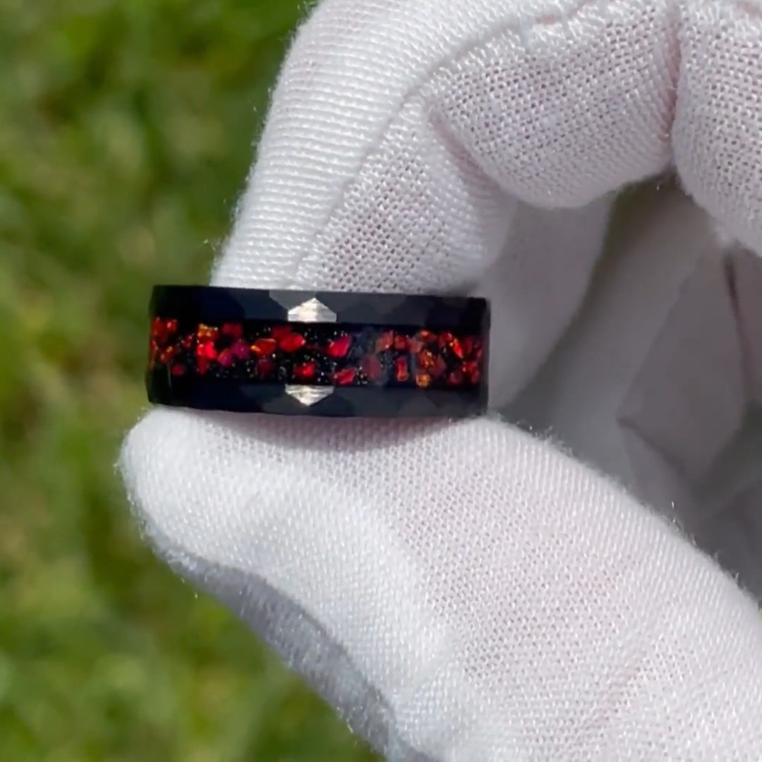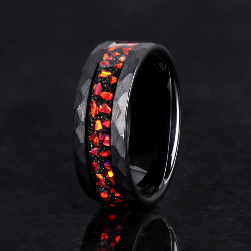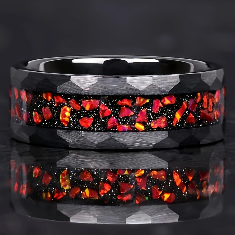 Color: Diamond-shaped red fire stainless steel ring