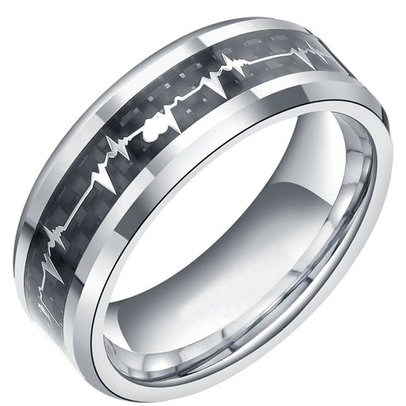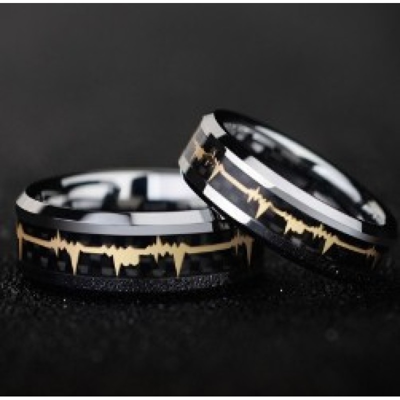 8mm Wide Tungsten Gold Ring Inlaid With ECG Carbon Fiber Jewelry