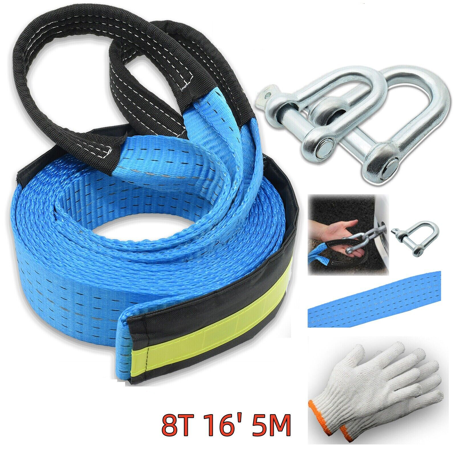 8T 16' 5M Abschleppseil, Schwerlast-Zugseil, Bergungsseil, zwei Schäkel, Kette