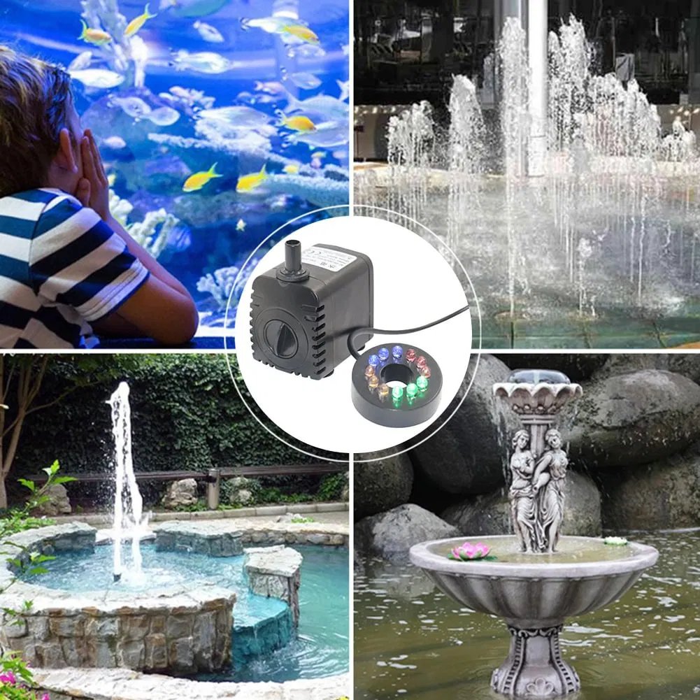 8W Submersible Water Pump Aquarium Fish Tank Fountain With 12 LED Lights