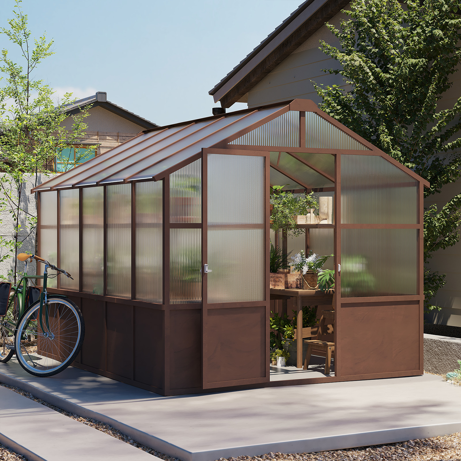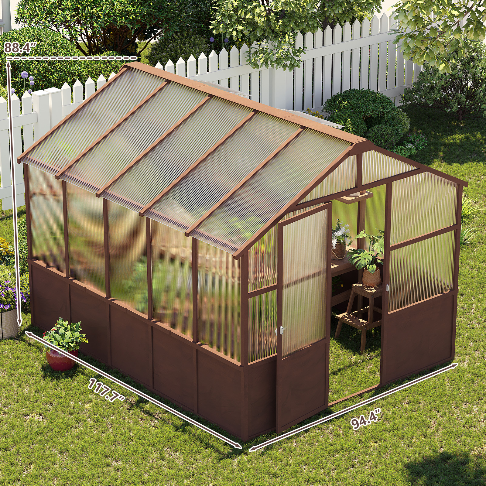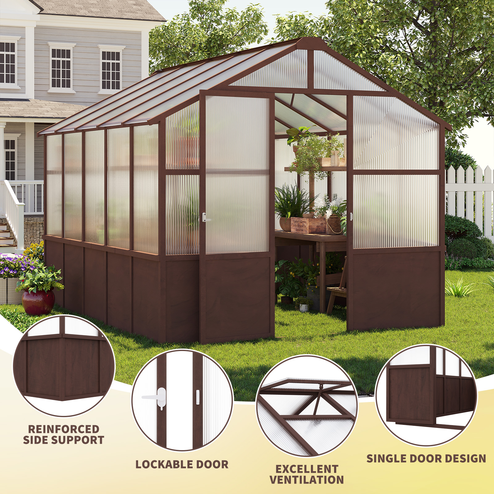 Product Name:8x10 FT Greenhouse Kit, Wood Greenhouses with 6MM Polycarbonate Panel, Green House with Adjustable Vent & Lockable Door, Walk-in Greenhouse for Outside, Garden, Backyard