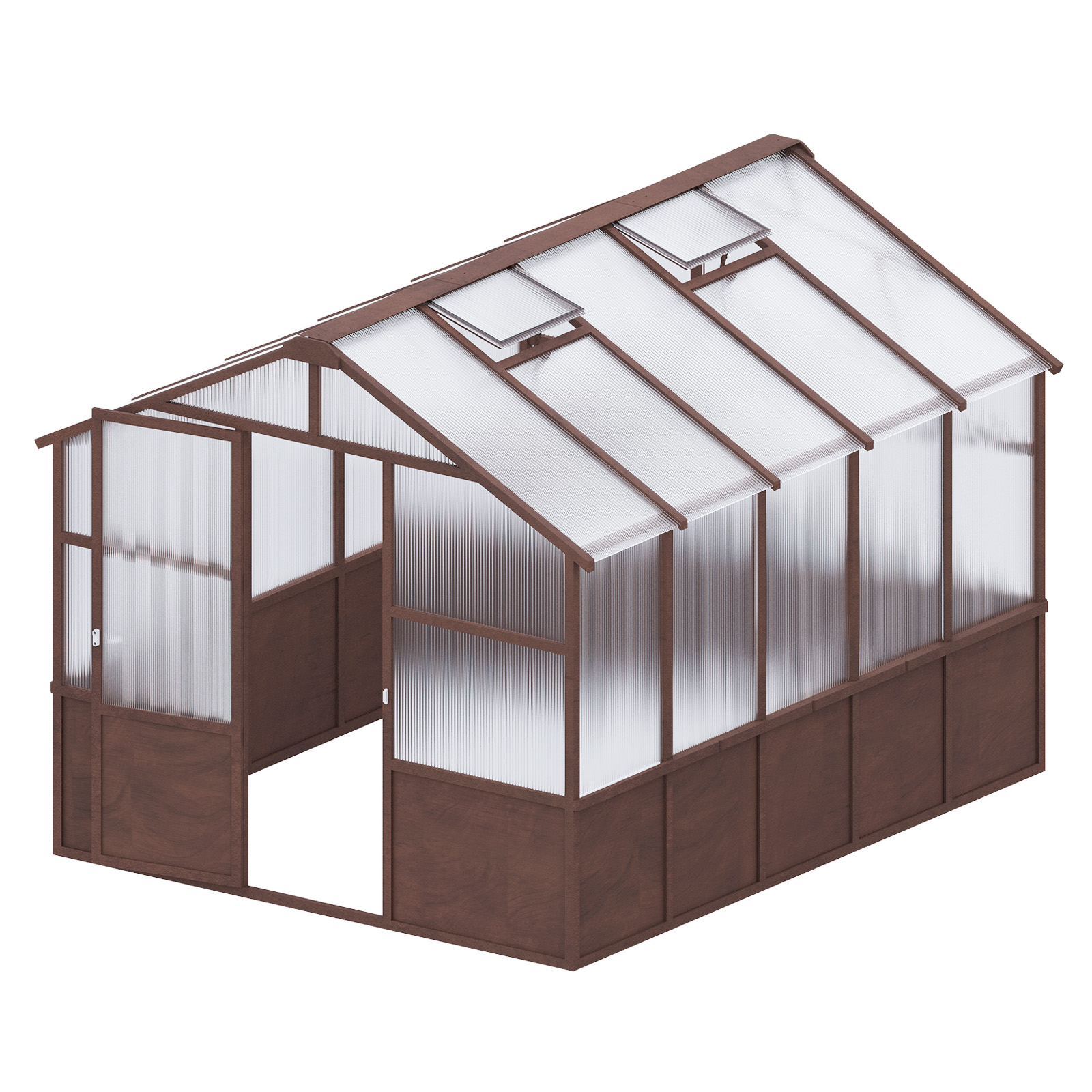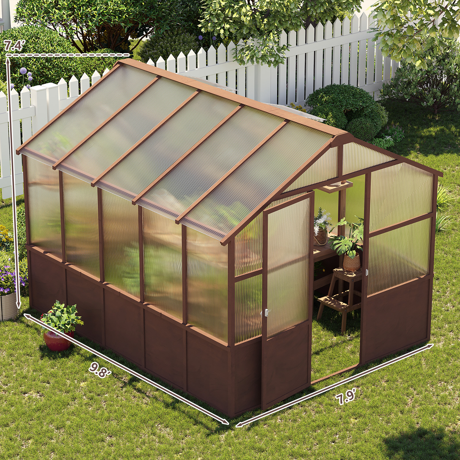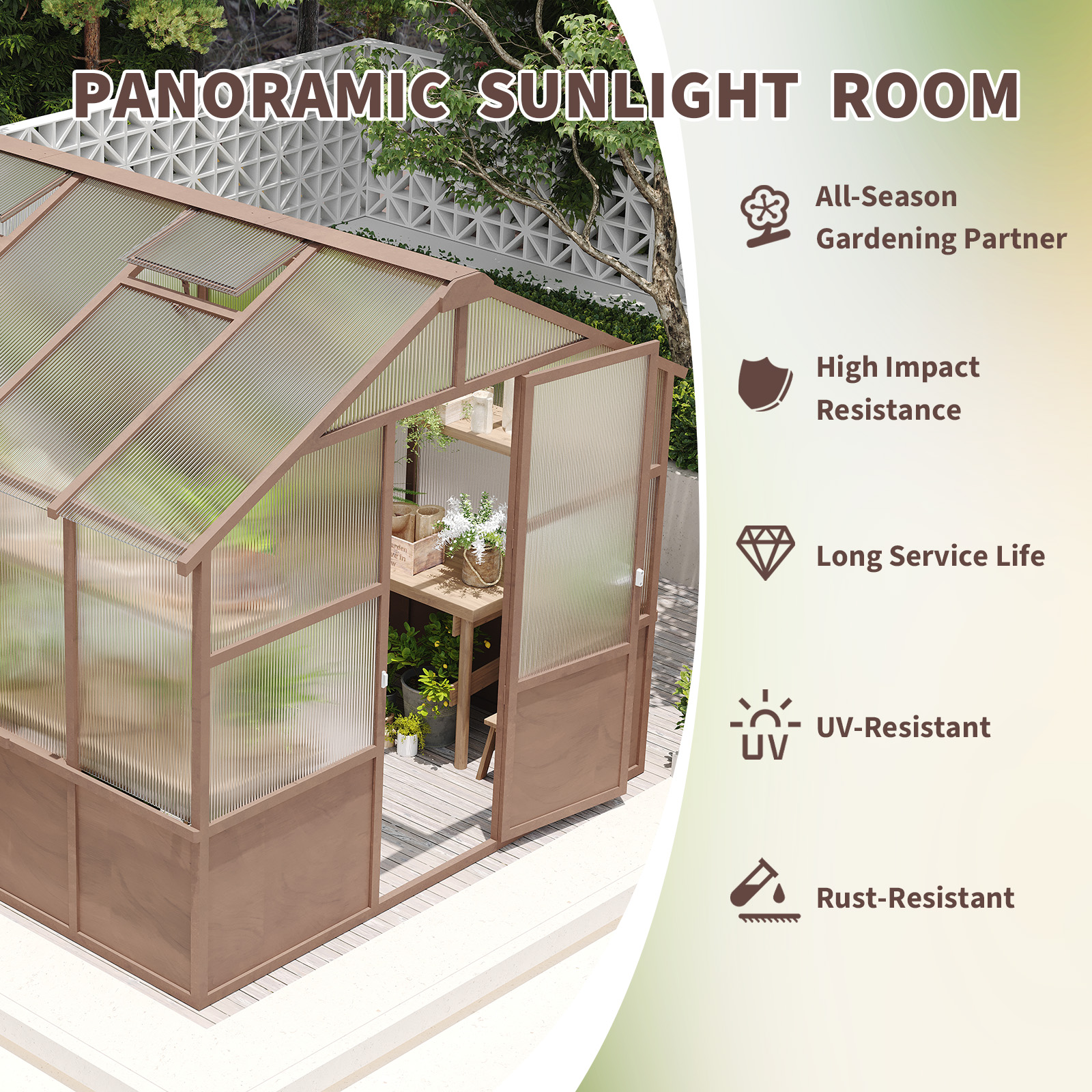 Product Name:8x10 FT Greenhouse Kit, Wood Greenhouses with 6MM Polycarbonate Panel, Green House with Adjustable Vent & Lockable Door, Walk-in Greenhouse for Outside, Garden, Backyard