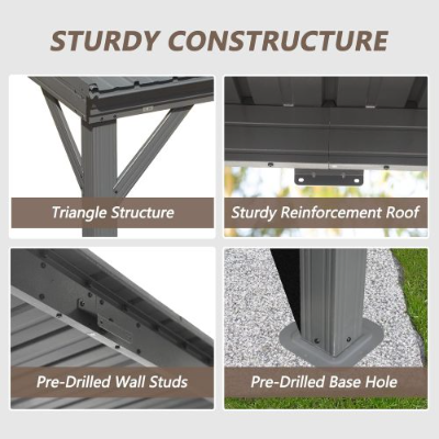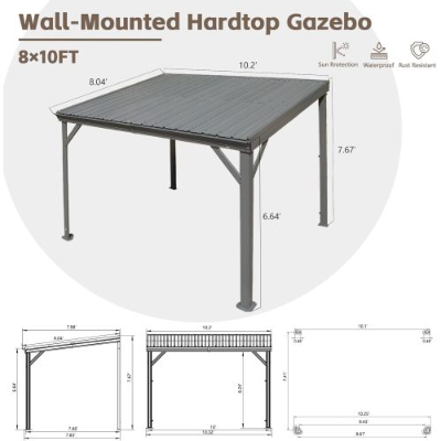 Product Name:8' x10' Lean to Gazebo with Upgraded Drainage System, Wall Mounted Gazebo Hardtop Galvanized Steel Sloping Roof for Patio Deck Backyard Lawn Party(Gray)