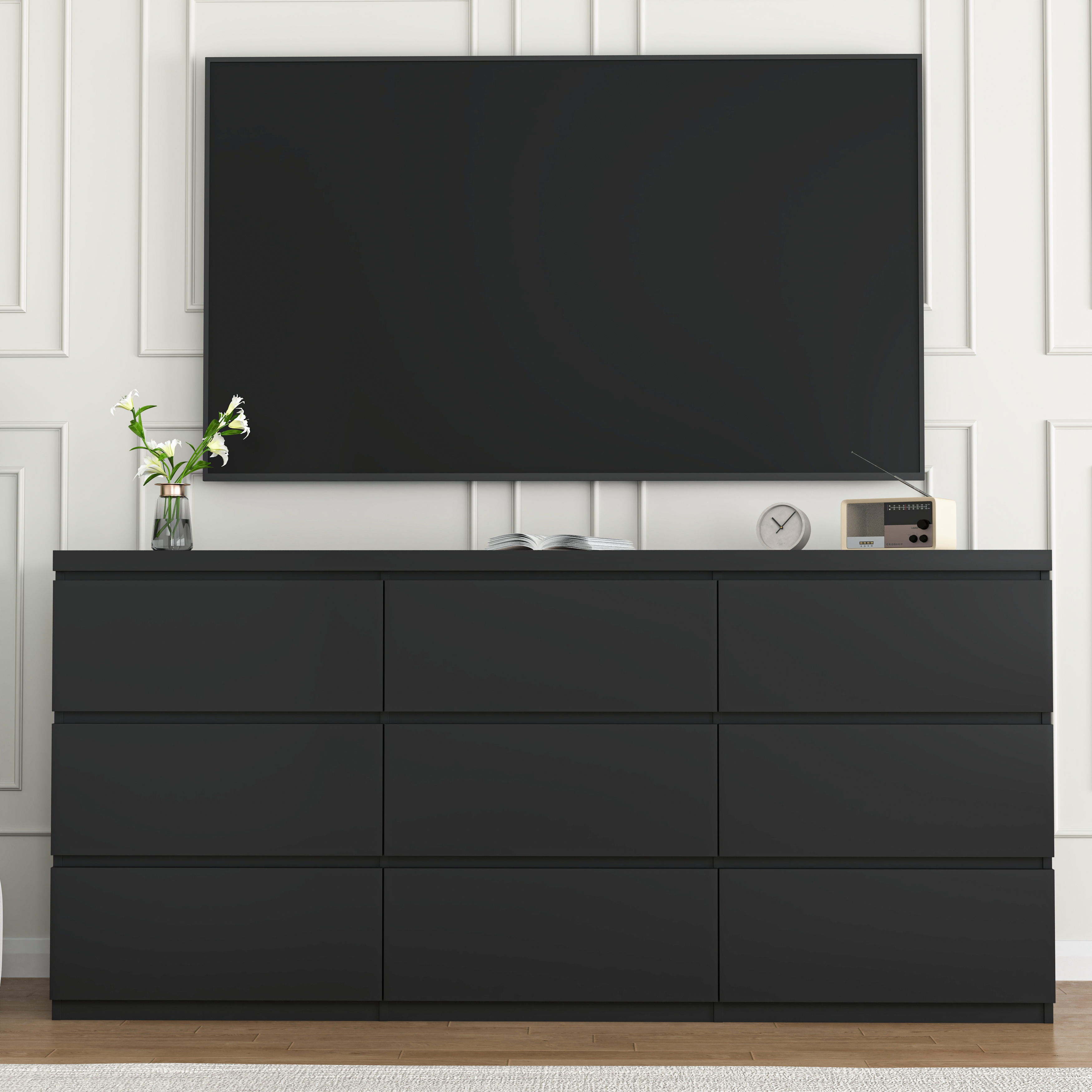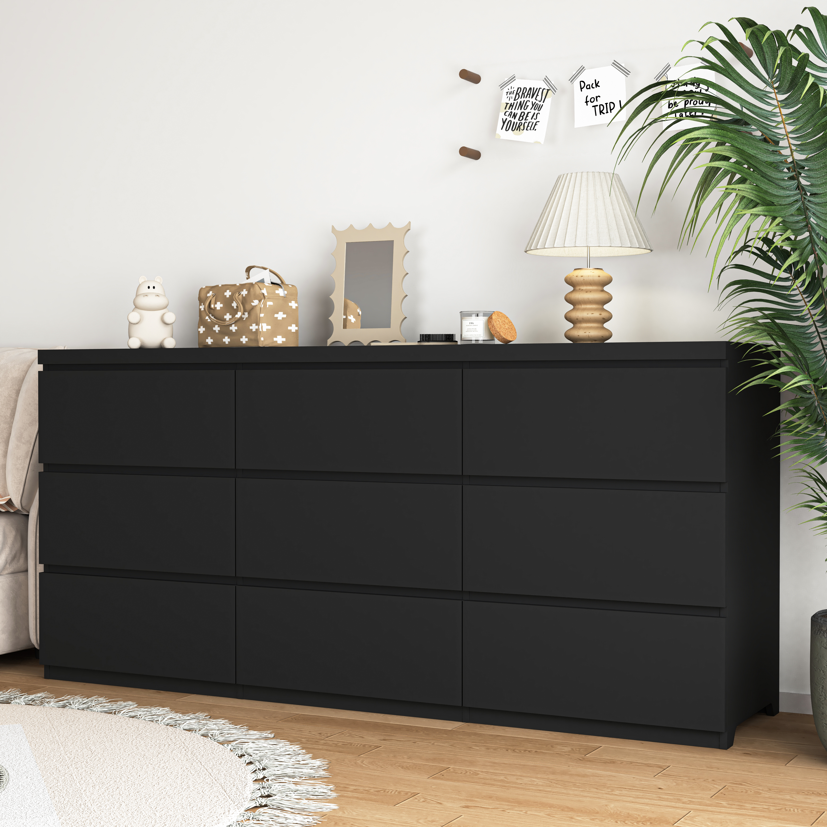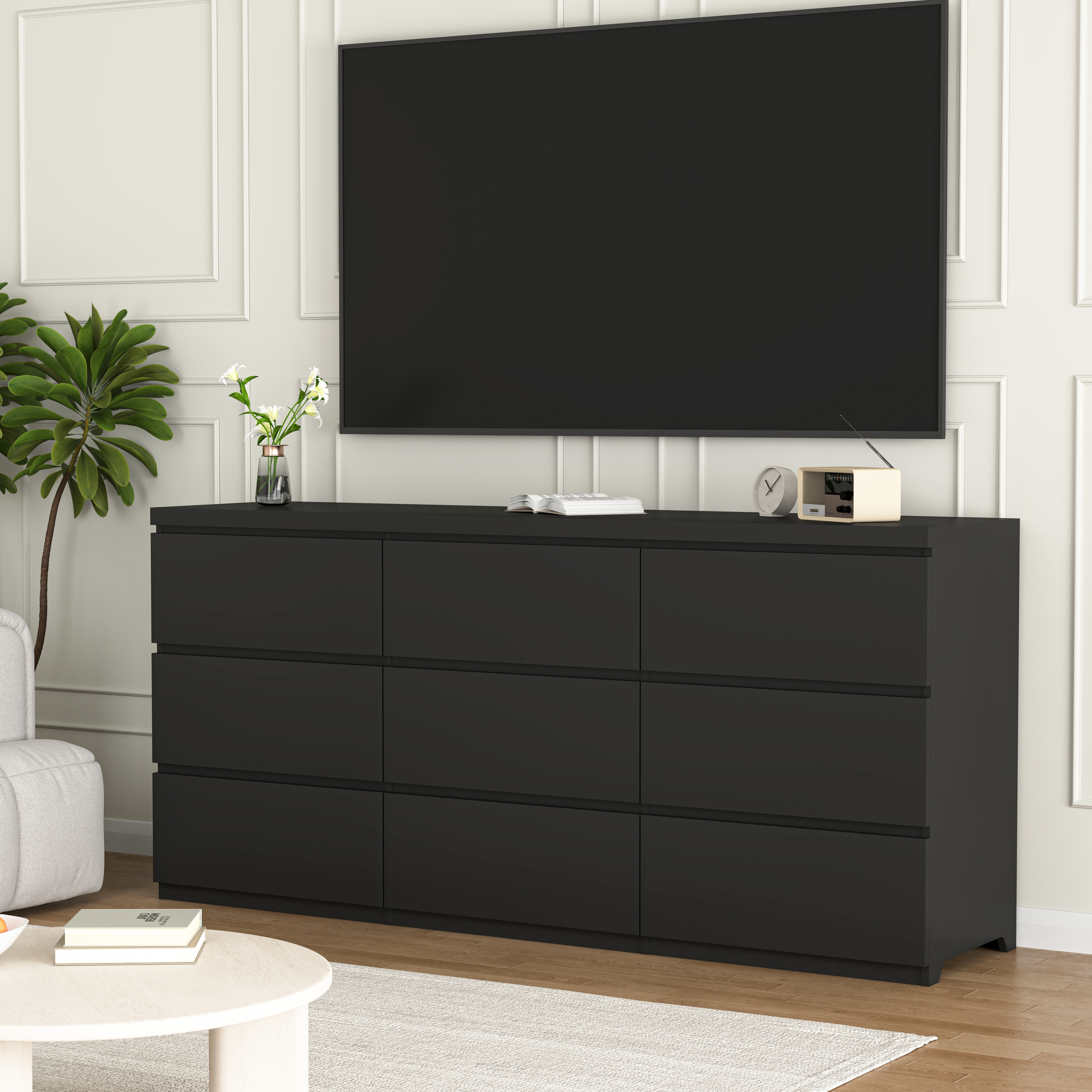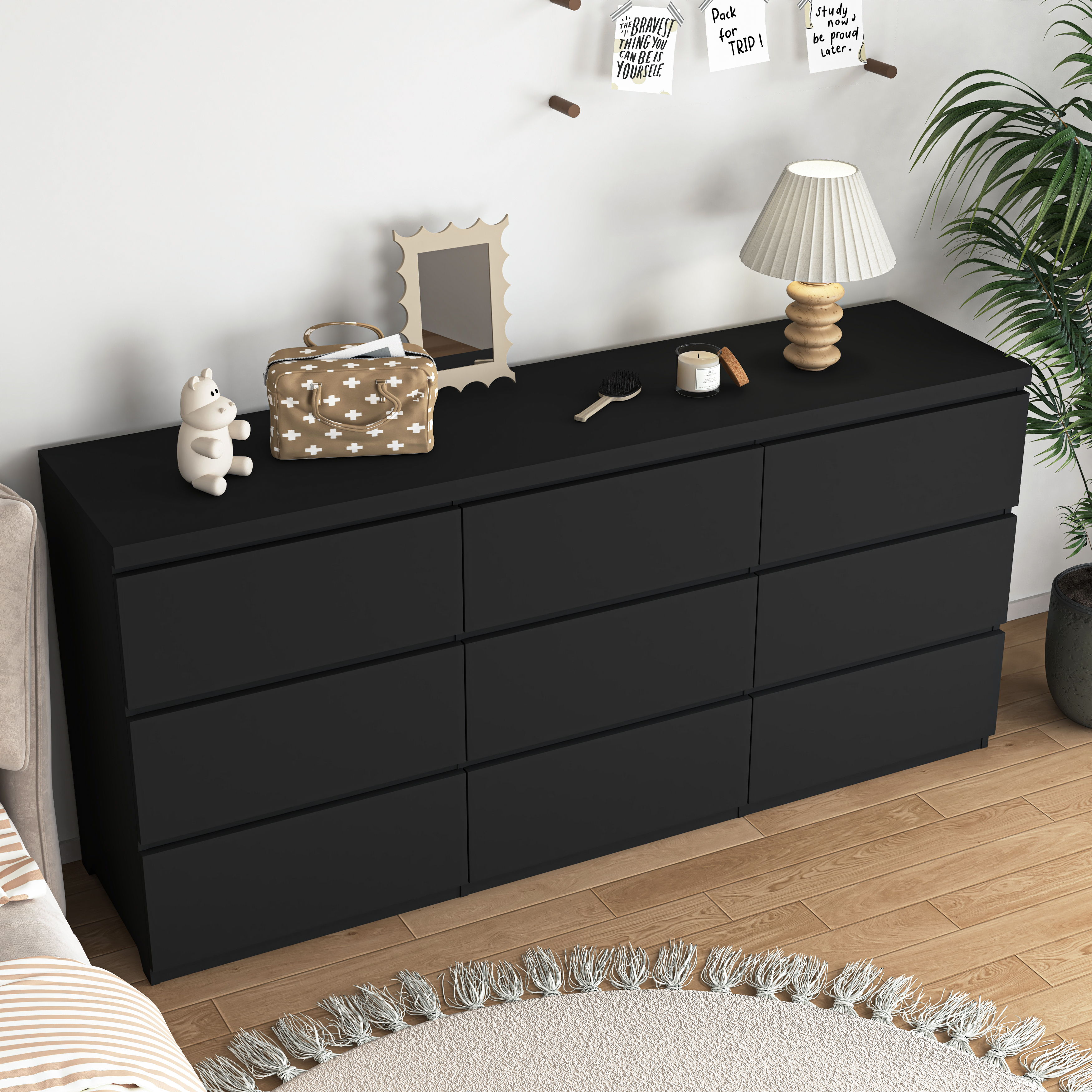 Product Name:9 Drawer Dresser with No Handle Design, Modern Black Matte Wood Dresser for Bedroom, Storage Chest of Drawers for Living Room, Hallway, Entryway
